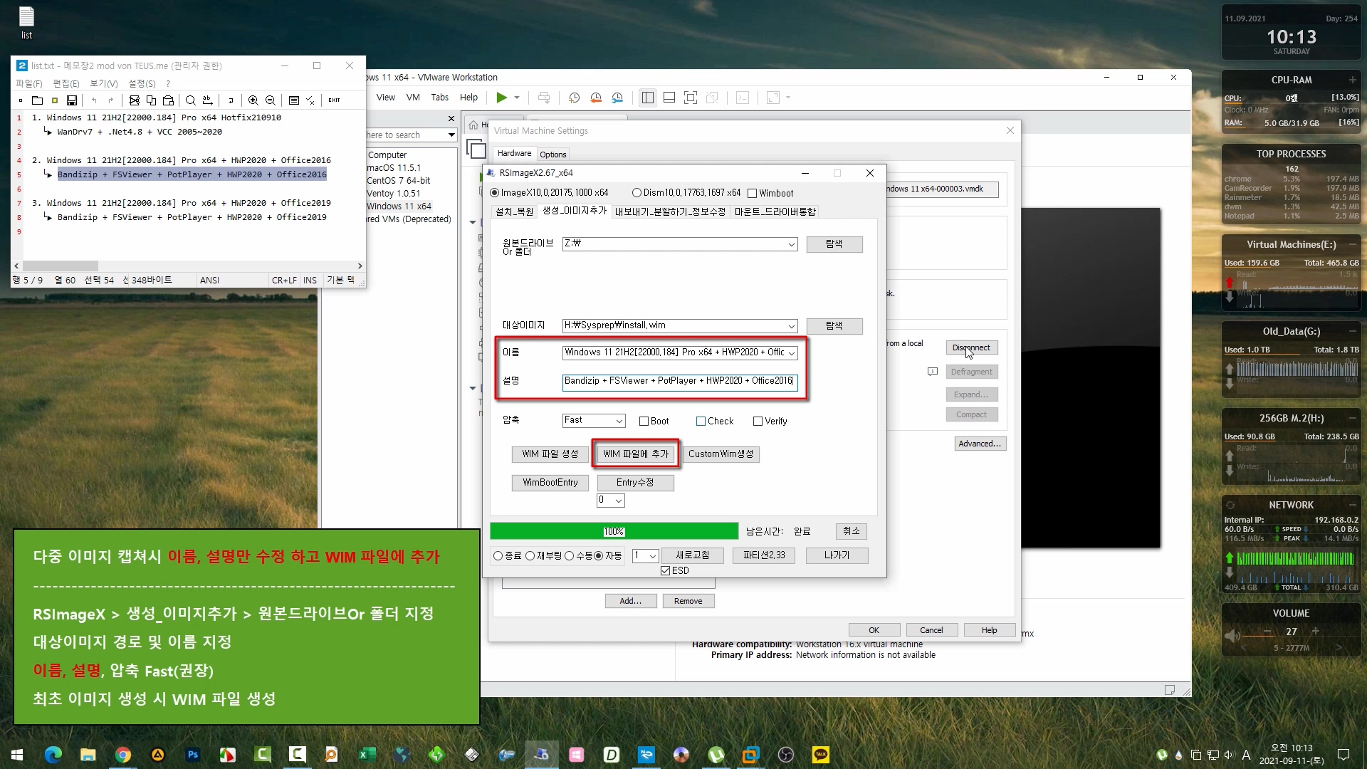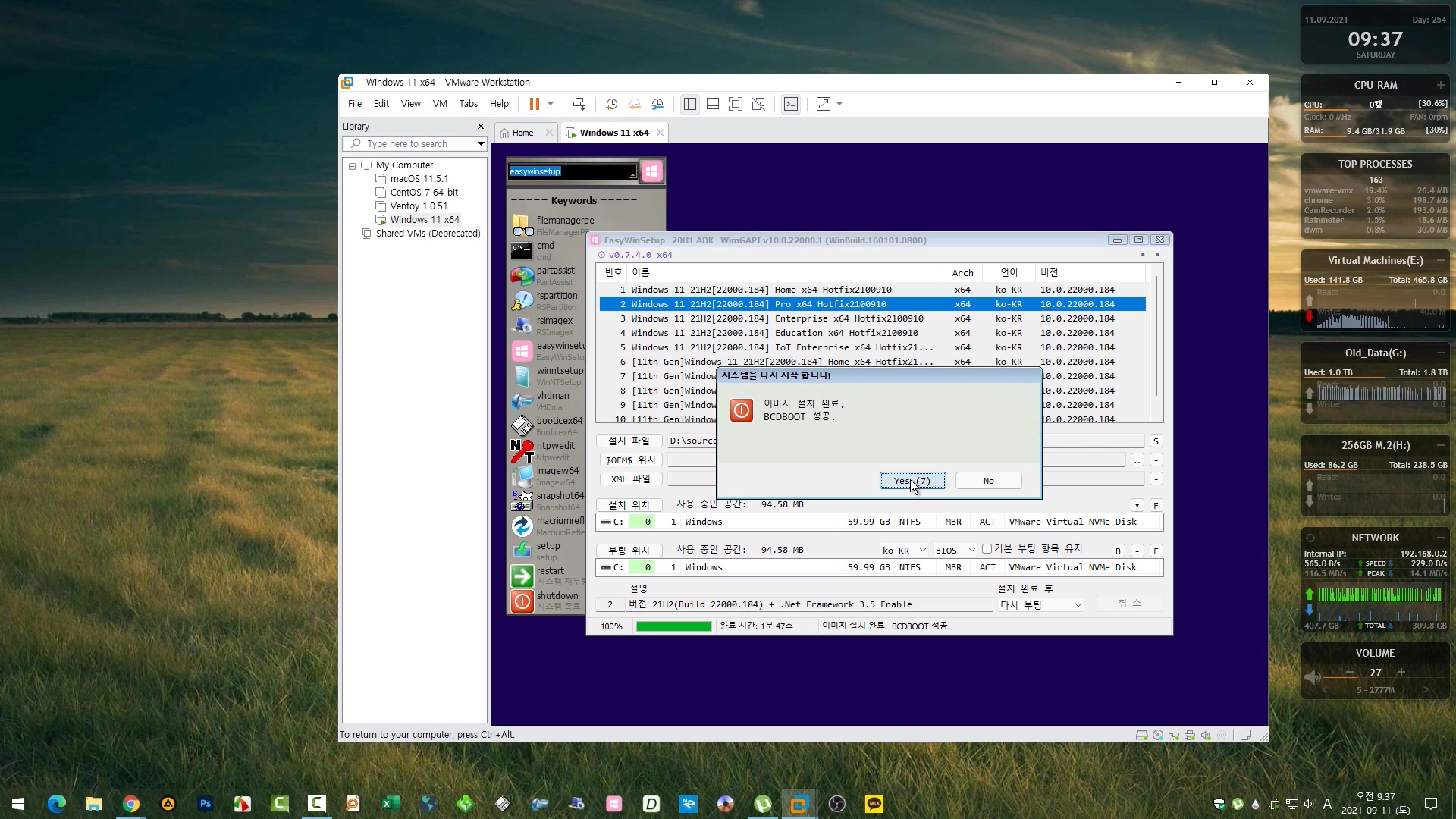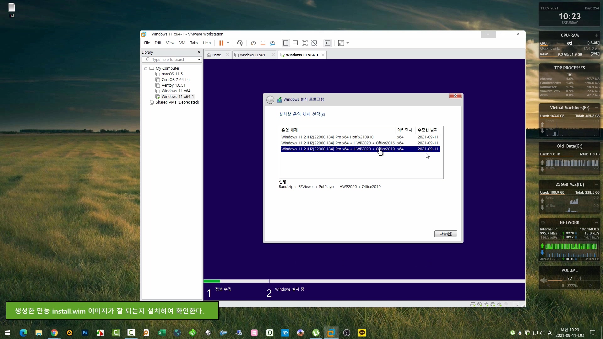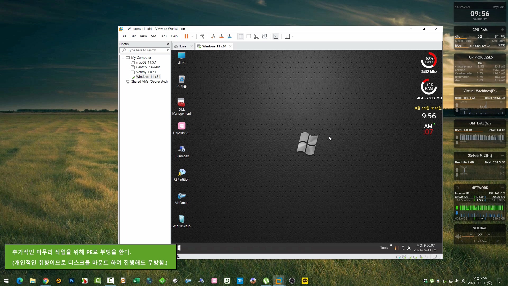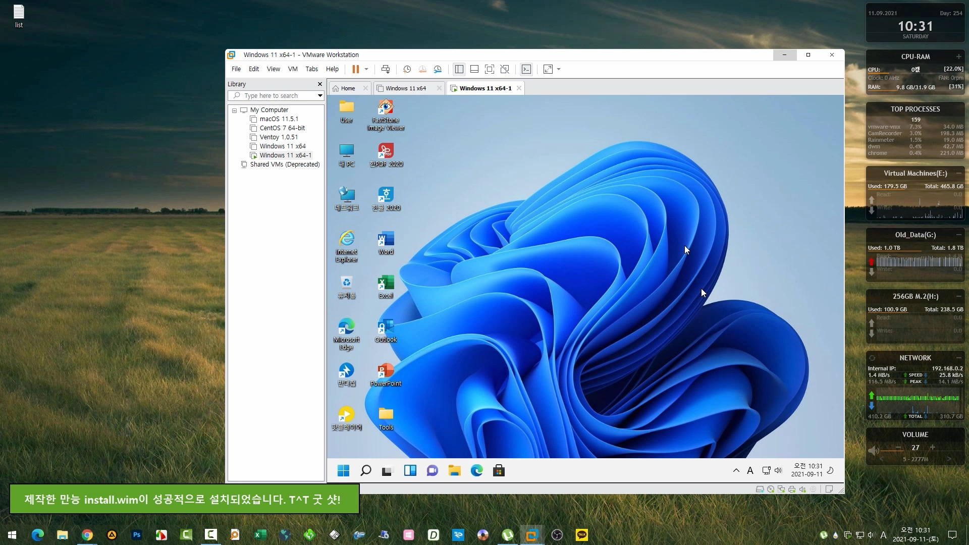 해당 영상 기준 이미지 3개 제작하는데 09:34분에 시작해서 설치 테스트까지 10:31분에 끝났으니 대략 1시간 정도 시간이 소요되었습니다. 시스템 사양은 아래와 같고 더 좋다면 시간을 단축시킬 수 있습니다. HDD에서 제작 시 영상에서 제작한 시간보다 배 이상 걸릴 수 있으니 SSD에서 제작을 권장합니다.