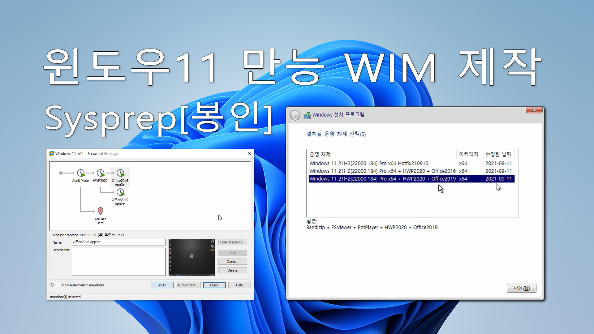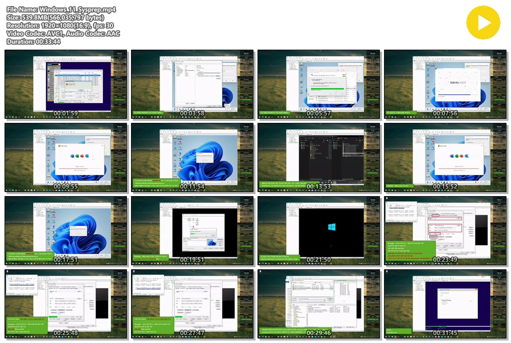 Sysprep을 이용한 만능 윈도우 install.wim 제작 방법을 녹화한 영상입니다. 해당 영상과 똑같은 방법으로 제작할 필요는 없습니다. 이러한 방법으로 제작된다 정도로 참고하셨으면 합니다. 세부 내용은 하단 유튜브 영상 시청해주세요. ^^