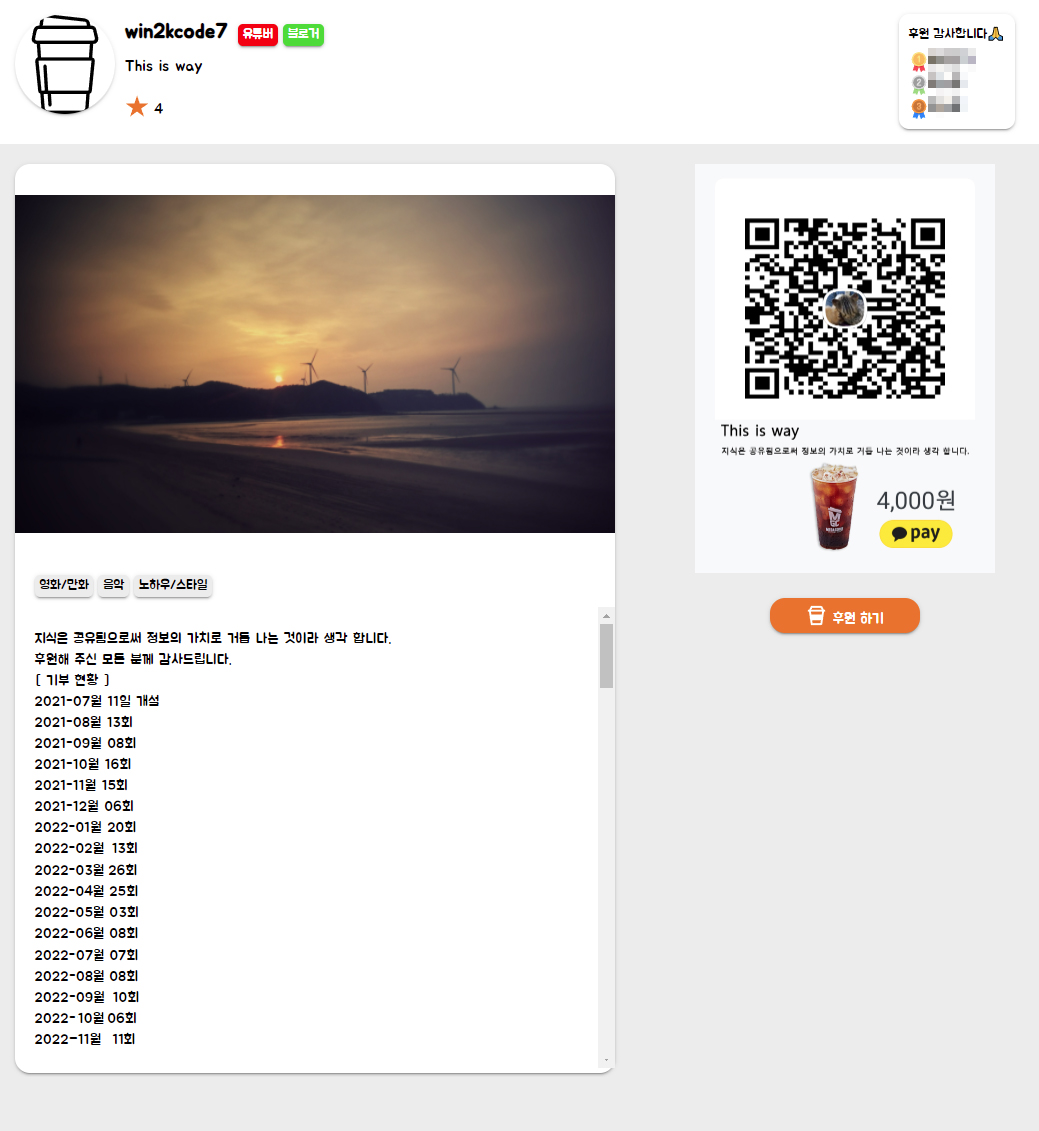 PS : 후원 방법 문의가 다수 있어 안내 차원에서 작성한 게시물입니다.