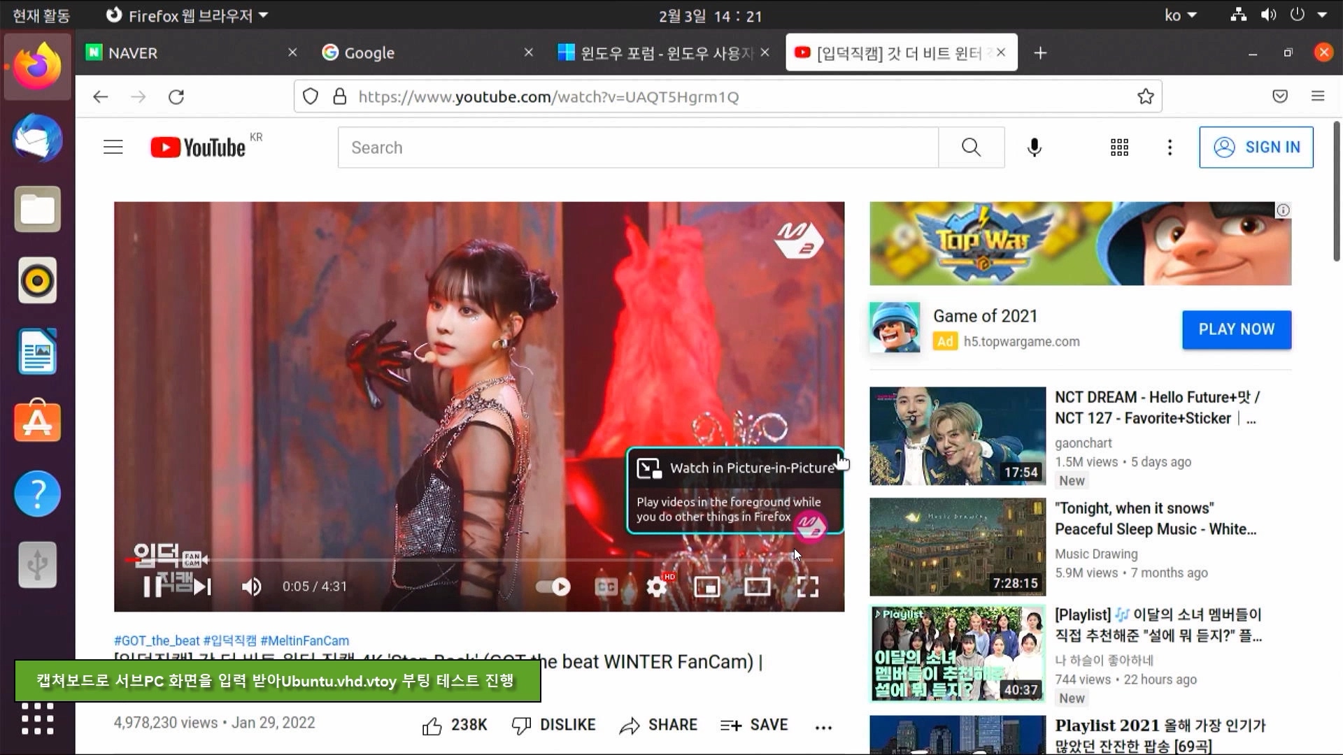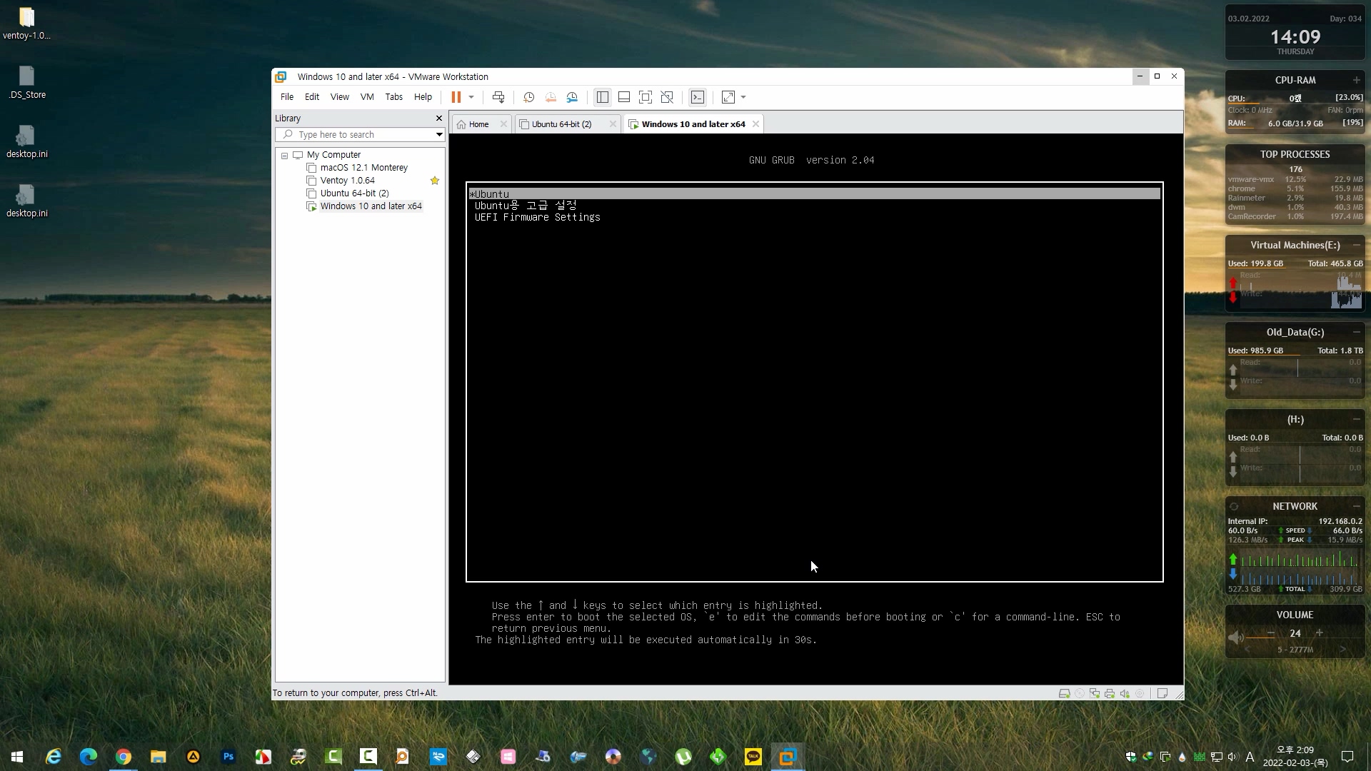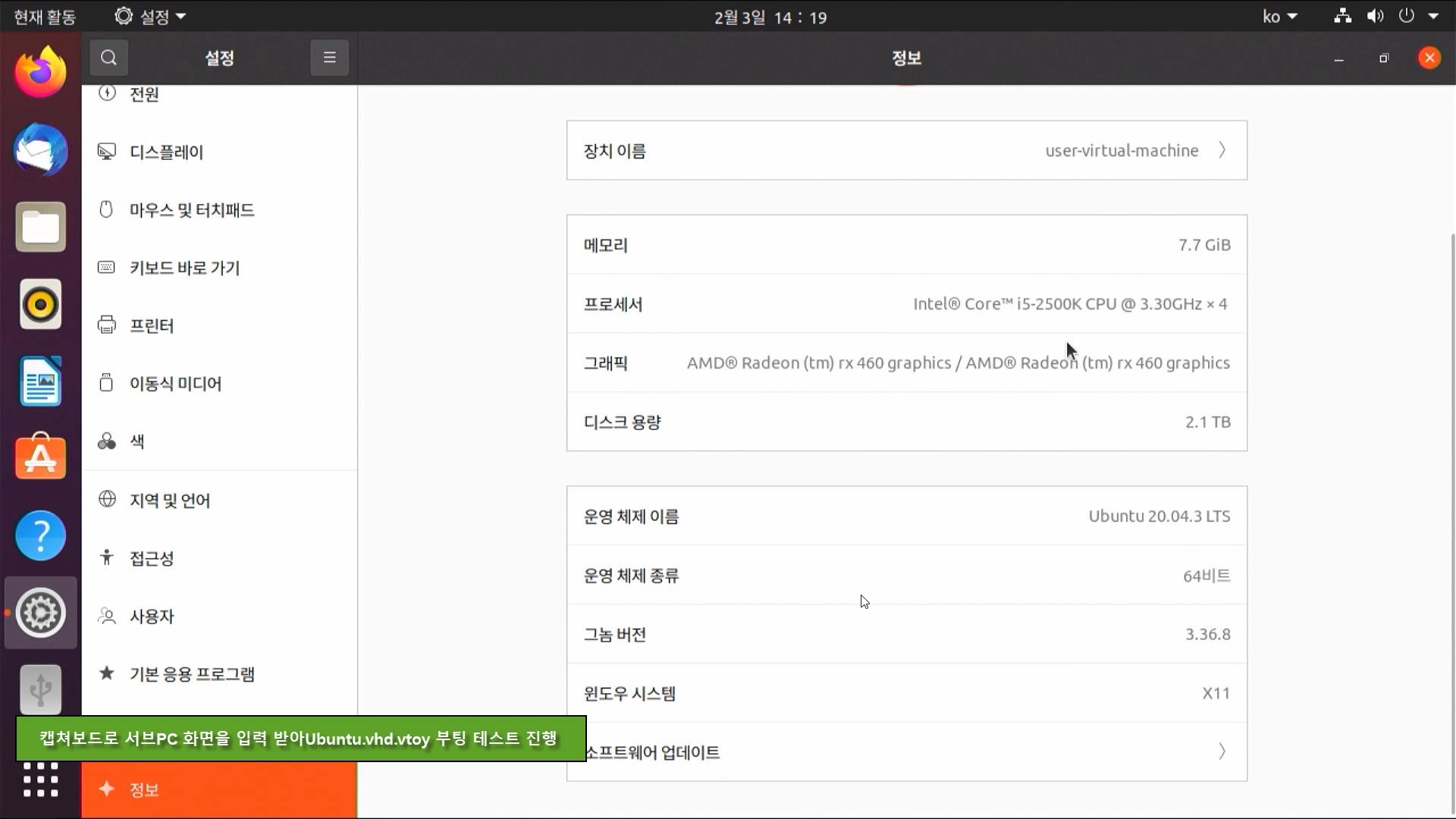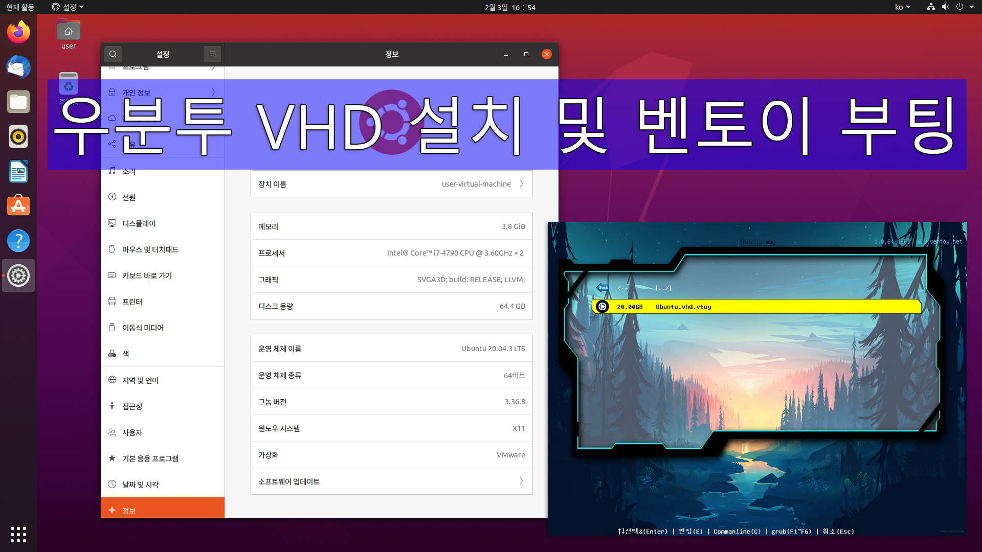 우분투를 VHD 고정 디스크에 설치하고 vtoyboot script를 적용하여 벤토이에서 Ubuntu.vhd 부팅하는 과정을 녹화해 보았습니다. 참고용 영상으로 활용해 보시기 바랍니다.