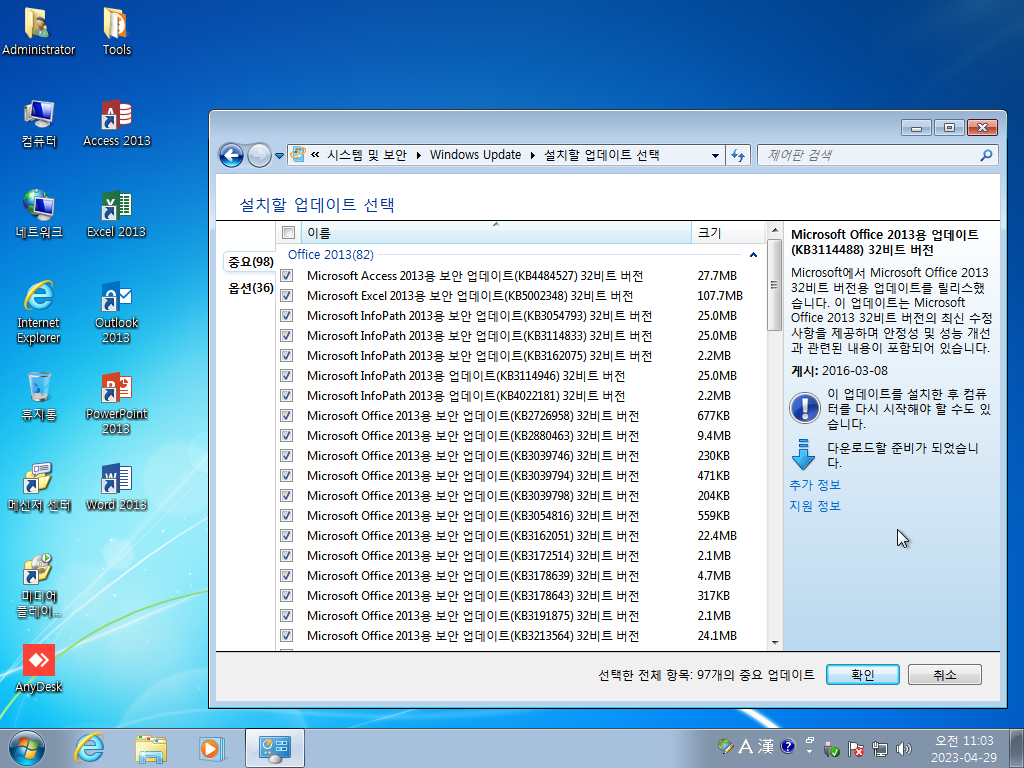 오피스 2013 32비트, 64비트 업데이트 리스트, 업데이트 자동 설치
