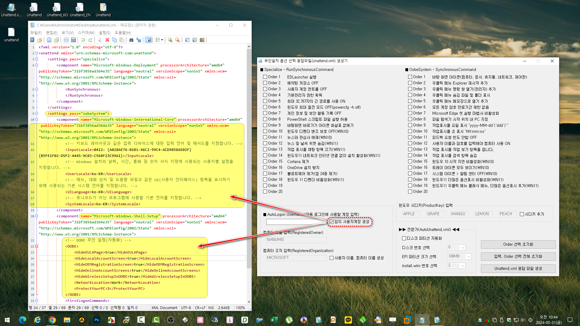 무인설치 옵션 선택 응답파일(Unattend.xml) 생성기