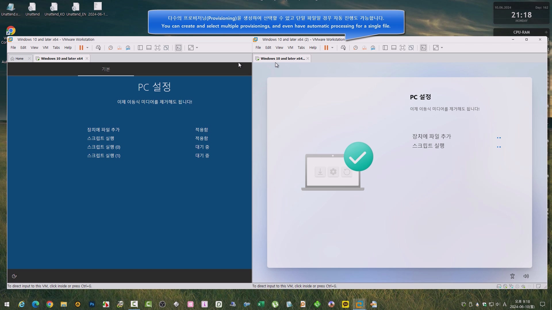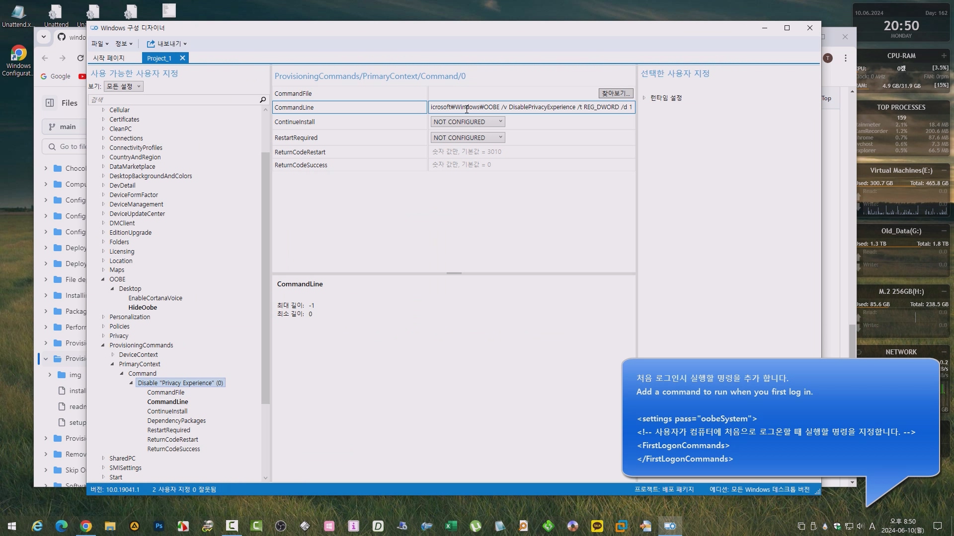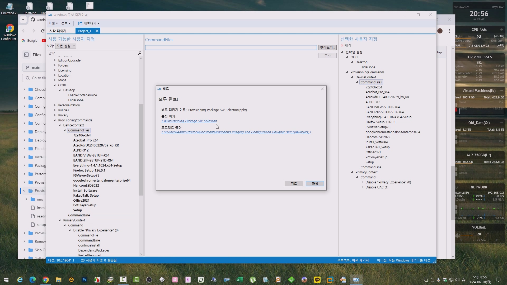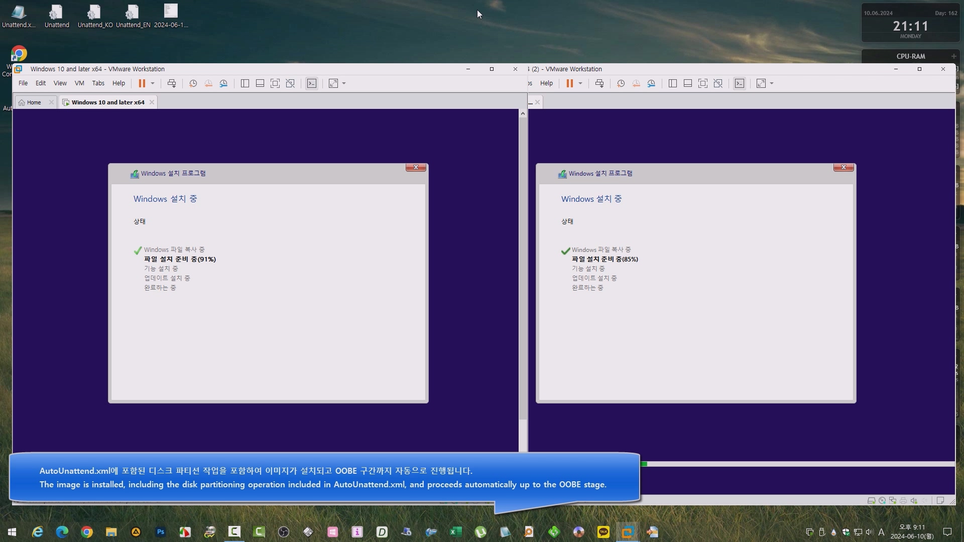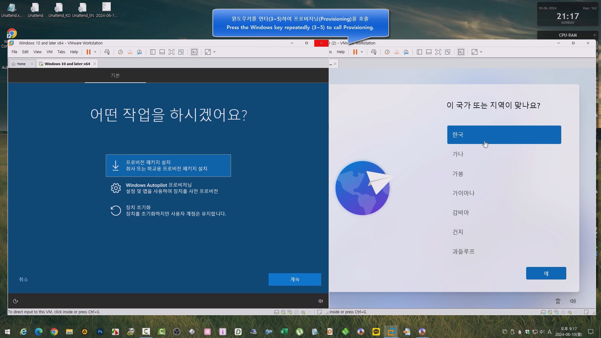 프로비저닝(Provisioning) 패키지를 생성하여 깡통 윈도우 통합 ISO 파일에 무인설치 응답파일(AutoUnattend.xml)과 디스크 파티션 과정, 여러 설정 옵션을 포함하여 응용 프로그램까지 설치 하는 과정을 녹화해 보았습니다. 다수의 PC에 선택적인 반복 작업을 하시는 분에게 유용한 정보가 될 듯합니다.