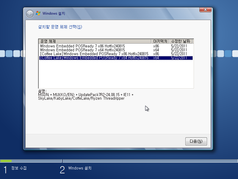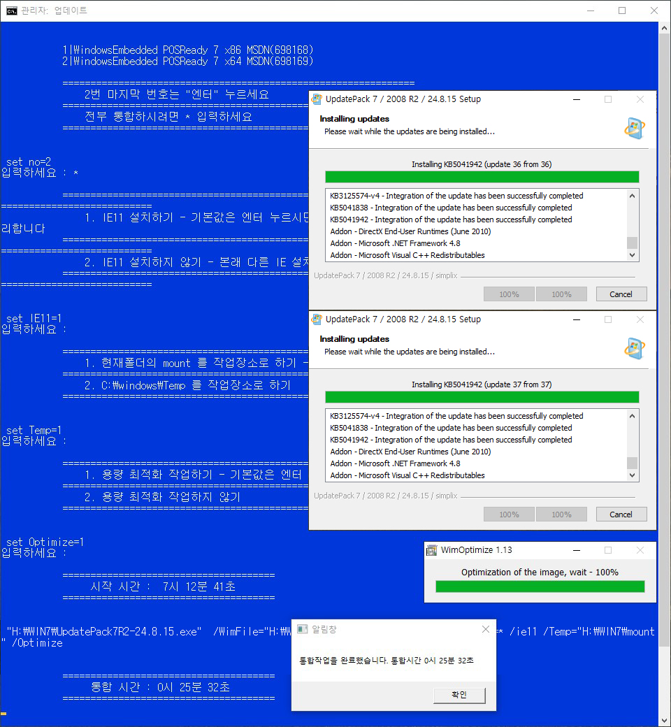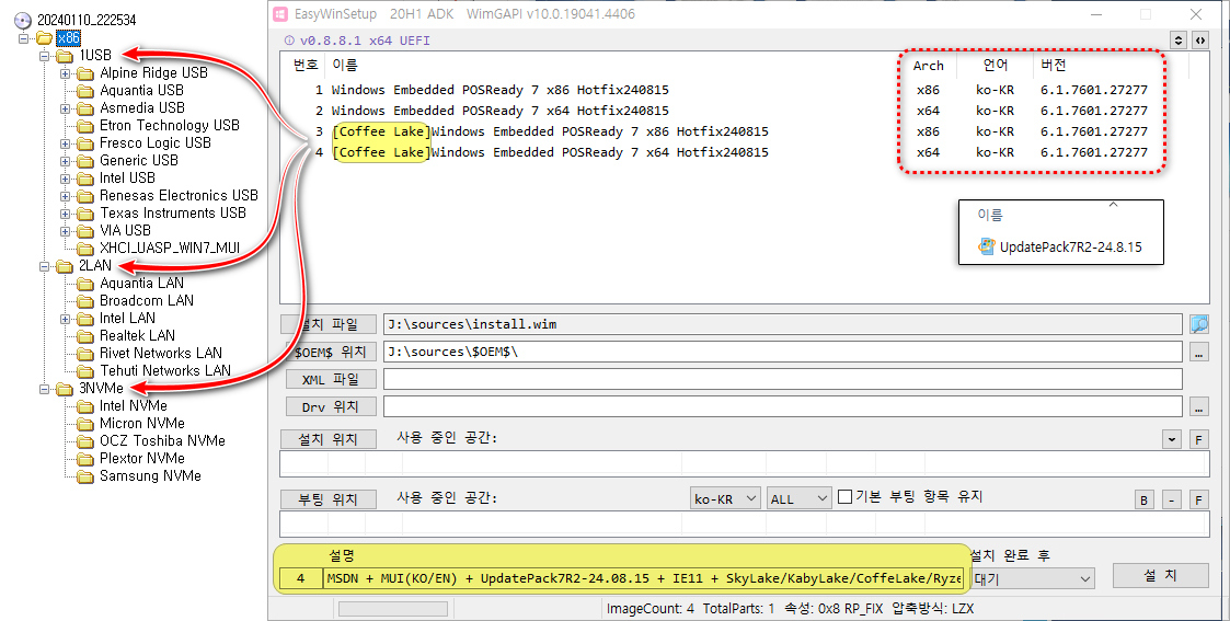 install.wim 파일은 위 파일로 UpdatePack7R2-24.8.15기반으로, IE11까지 통합 했습니다 - 오프라인 방식 -