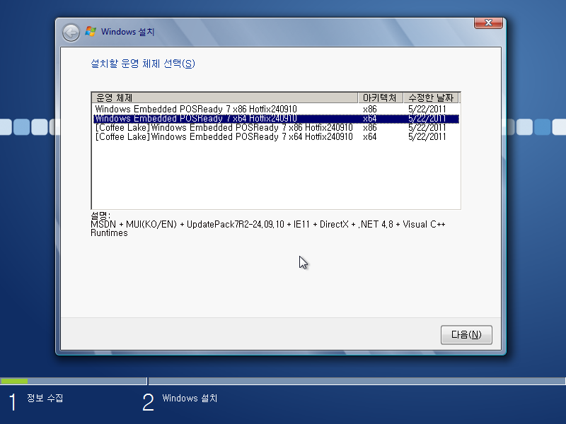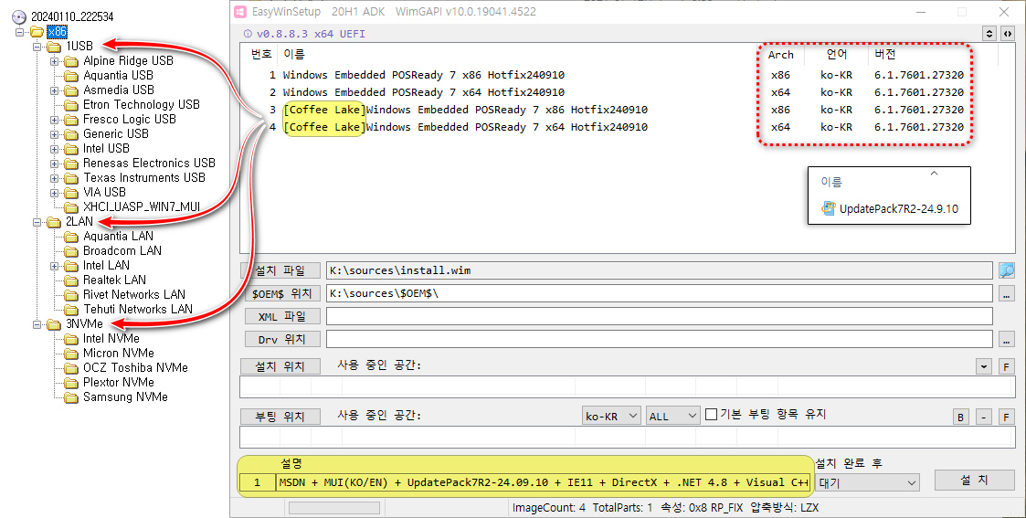 install.wim 파일은 위 파일로 UpdatePack7R2-24.9.10기반으로, IE11까지 통합 했습니다 - 오프라인 방식 -