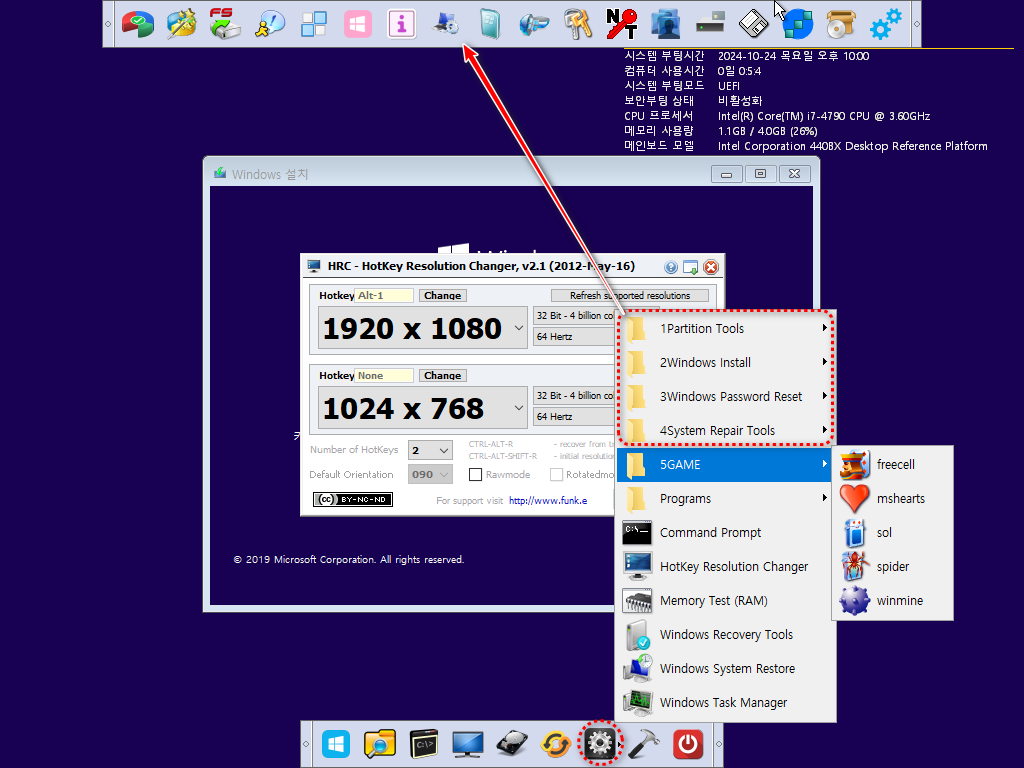 boot.wim 우회 및 LaunchBar 추가 기본 관리자(Administrator)계정으로 설치 됩니다.