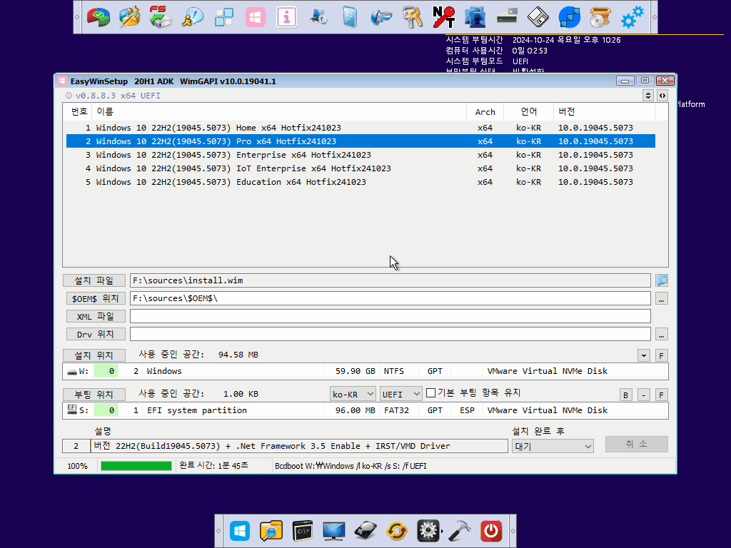 모든 Index의 winre.wim파일이 갱신되어 PE빌드에 사용할 수 있습니다.