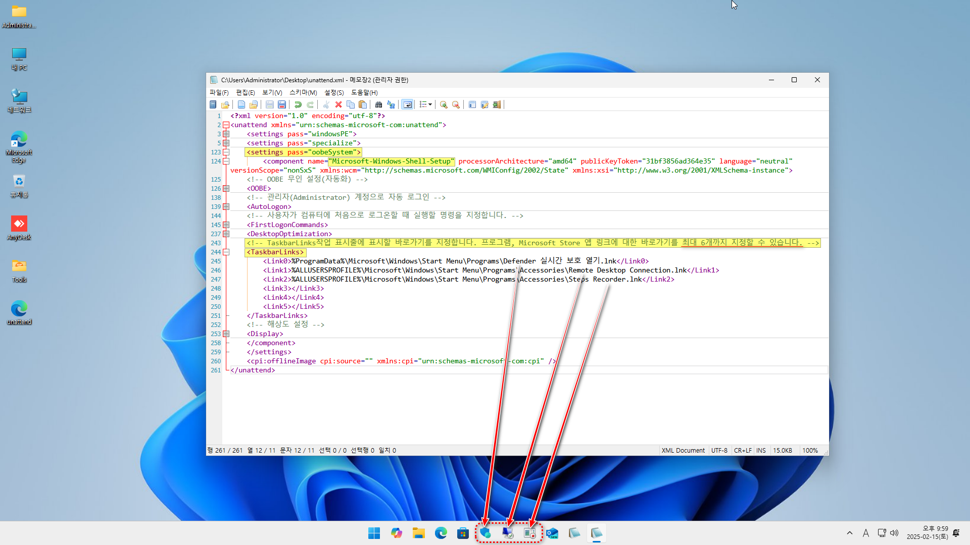 응답파일(unattend.xml) TaskbarLinks 적용 - 움짤 GIF