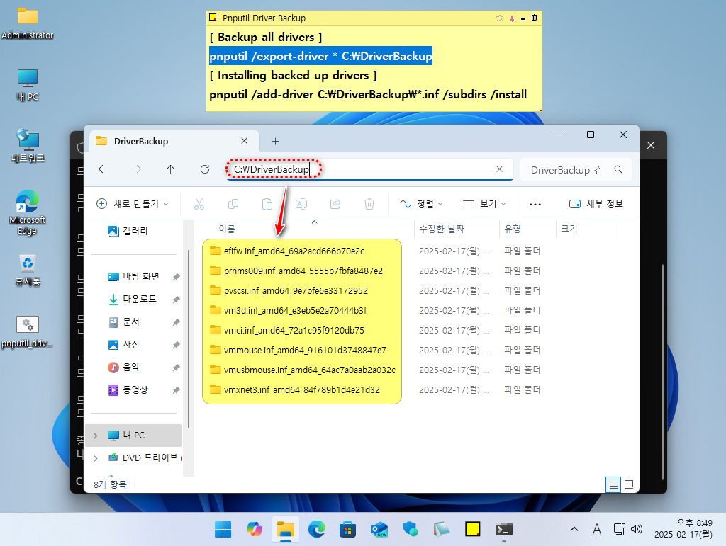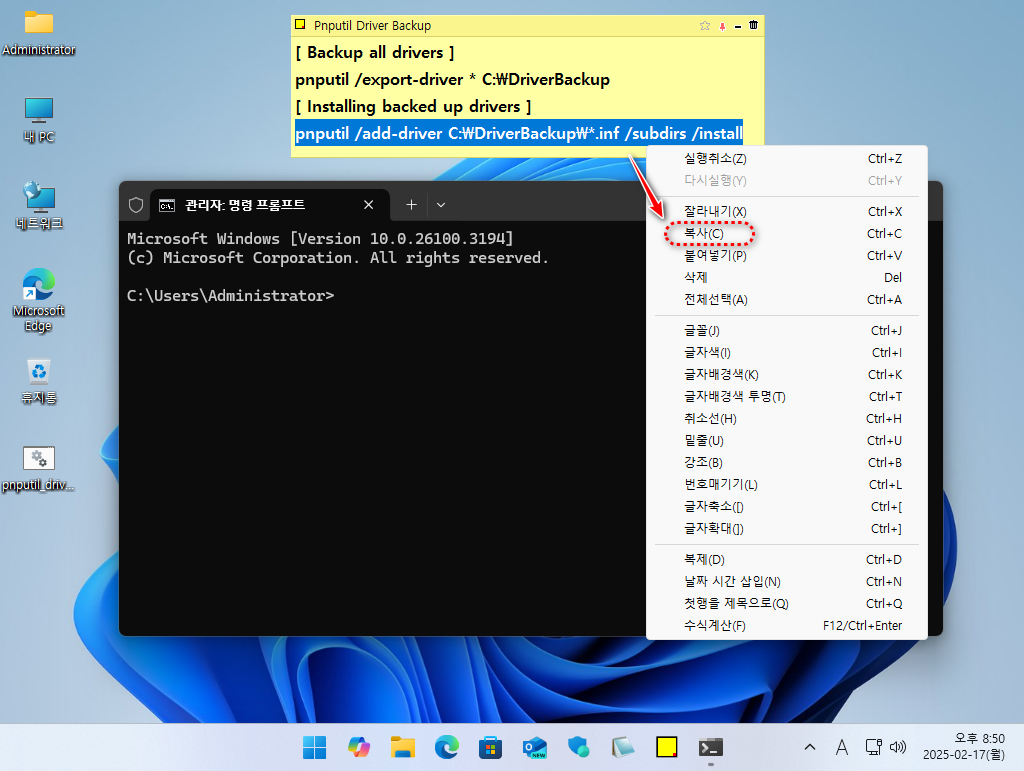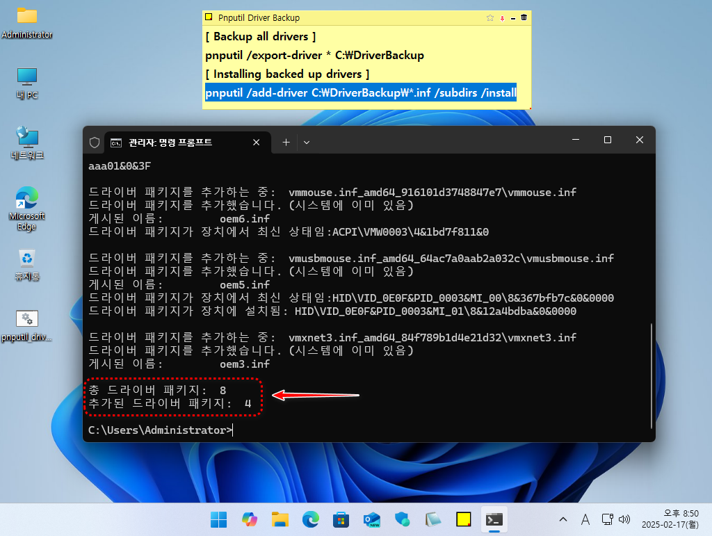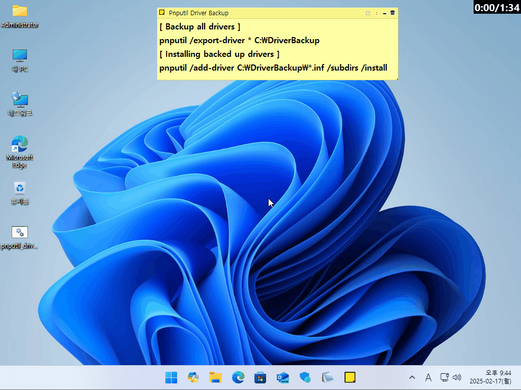 pnputil 명령어를 이용한 드라이버 백업 및 복구 - 움짤 GIF