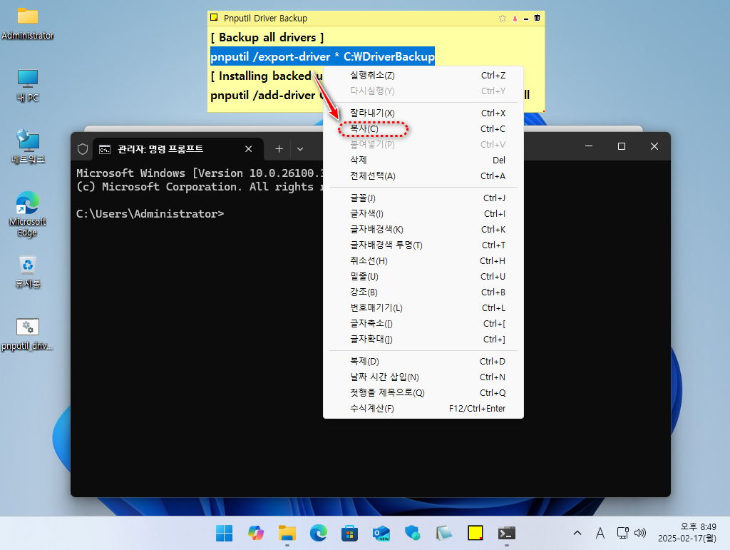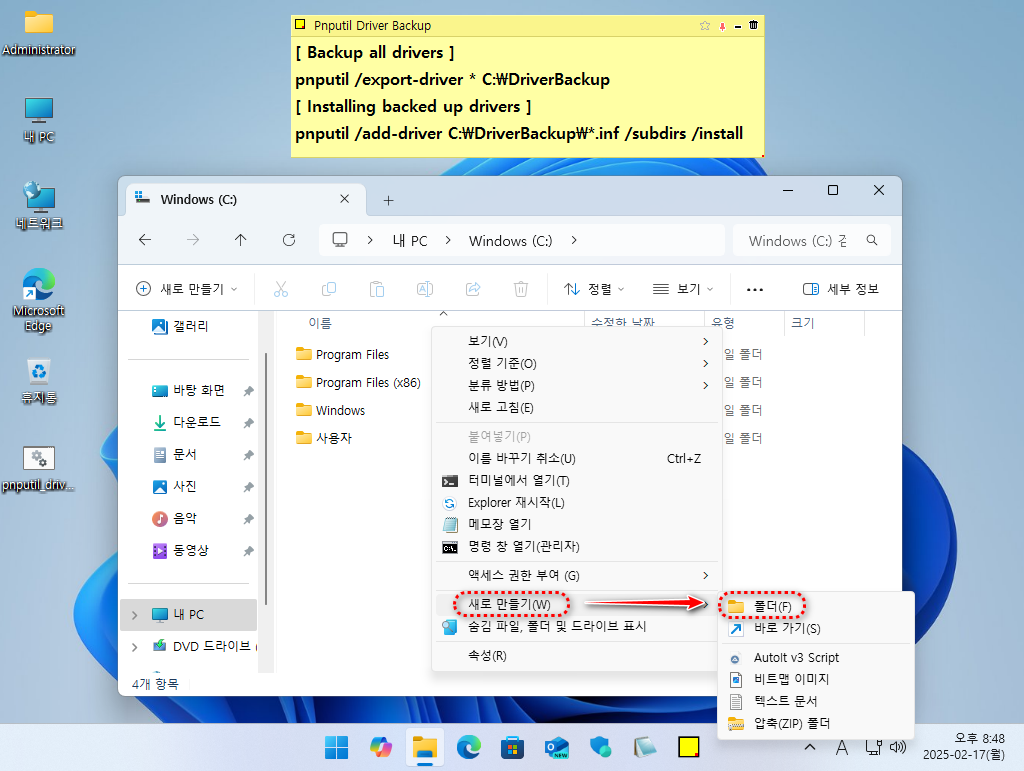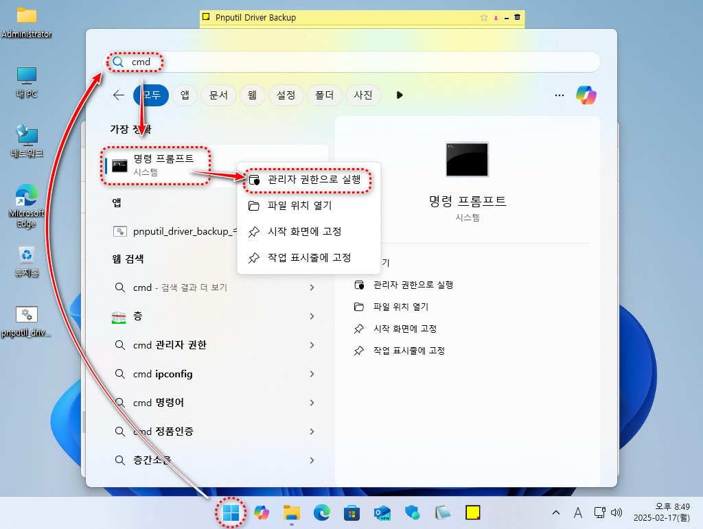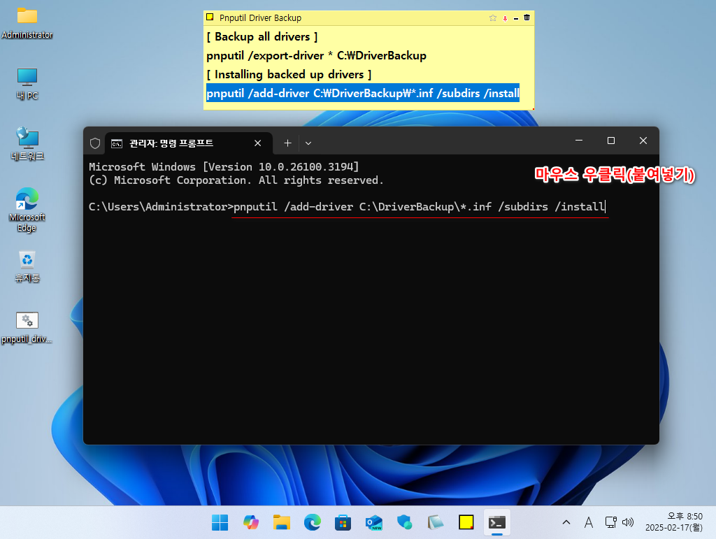 pnputil 명령어를 이용한 드라이버 백업 및 복구 - 움짤 GIF