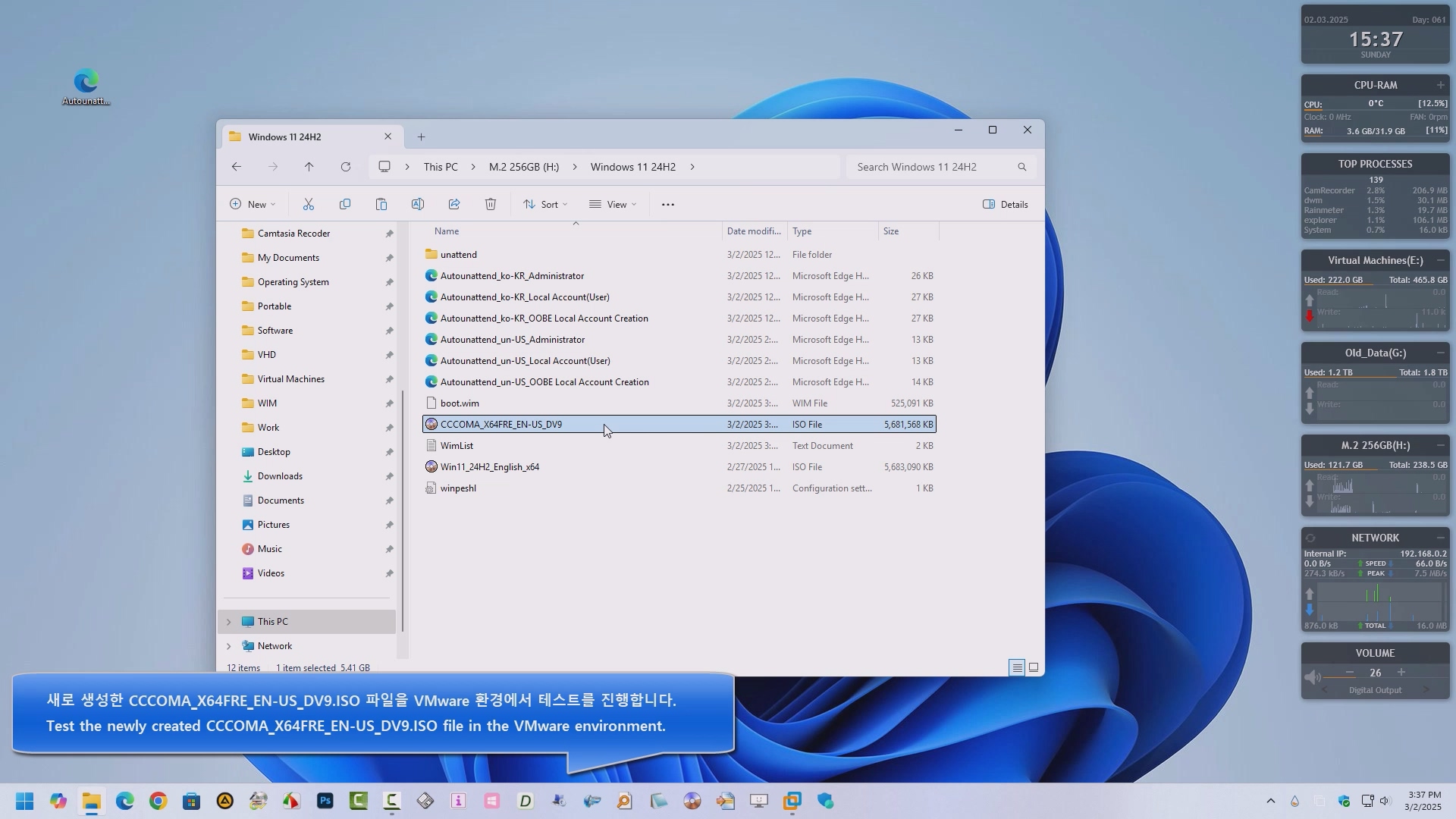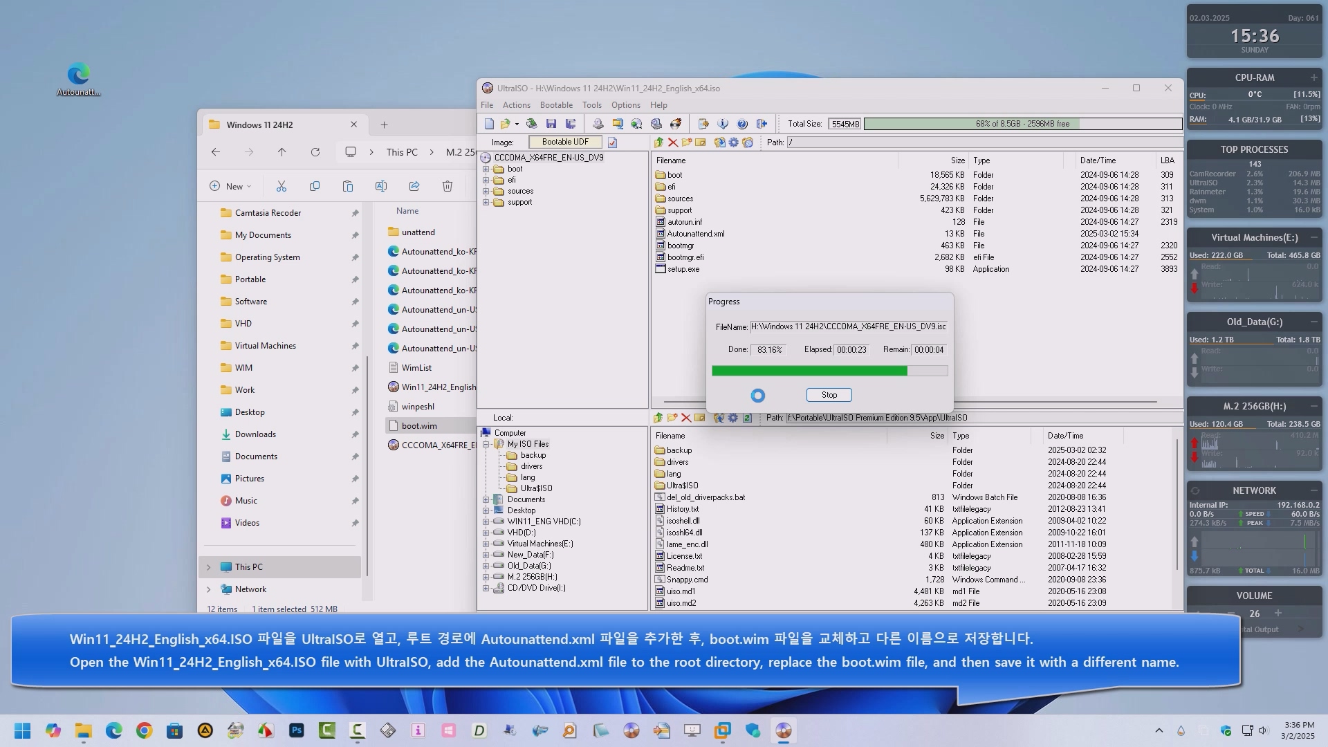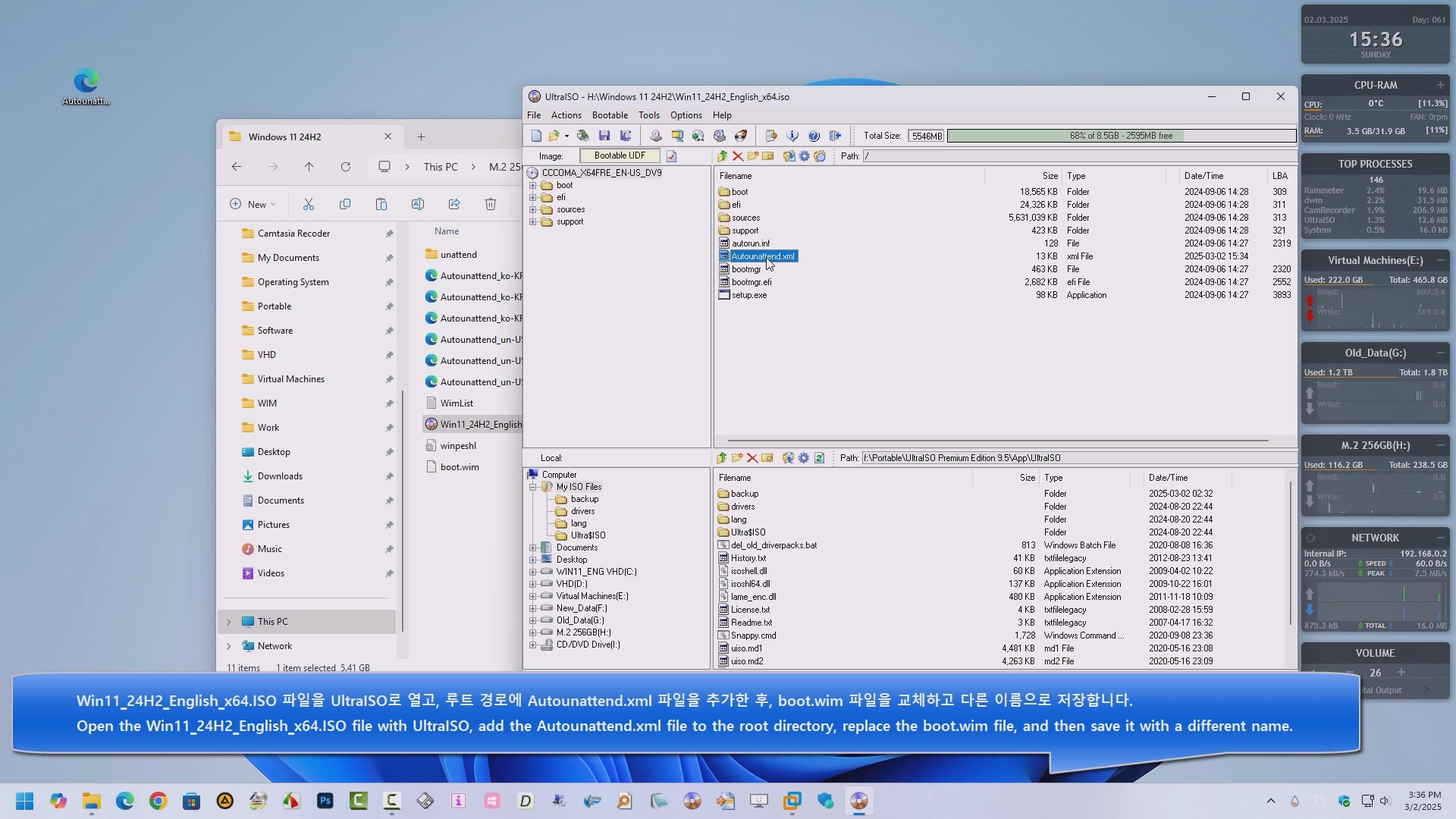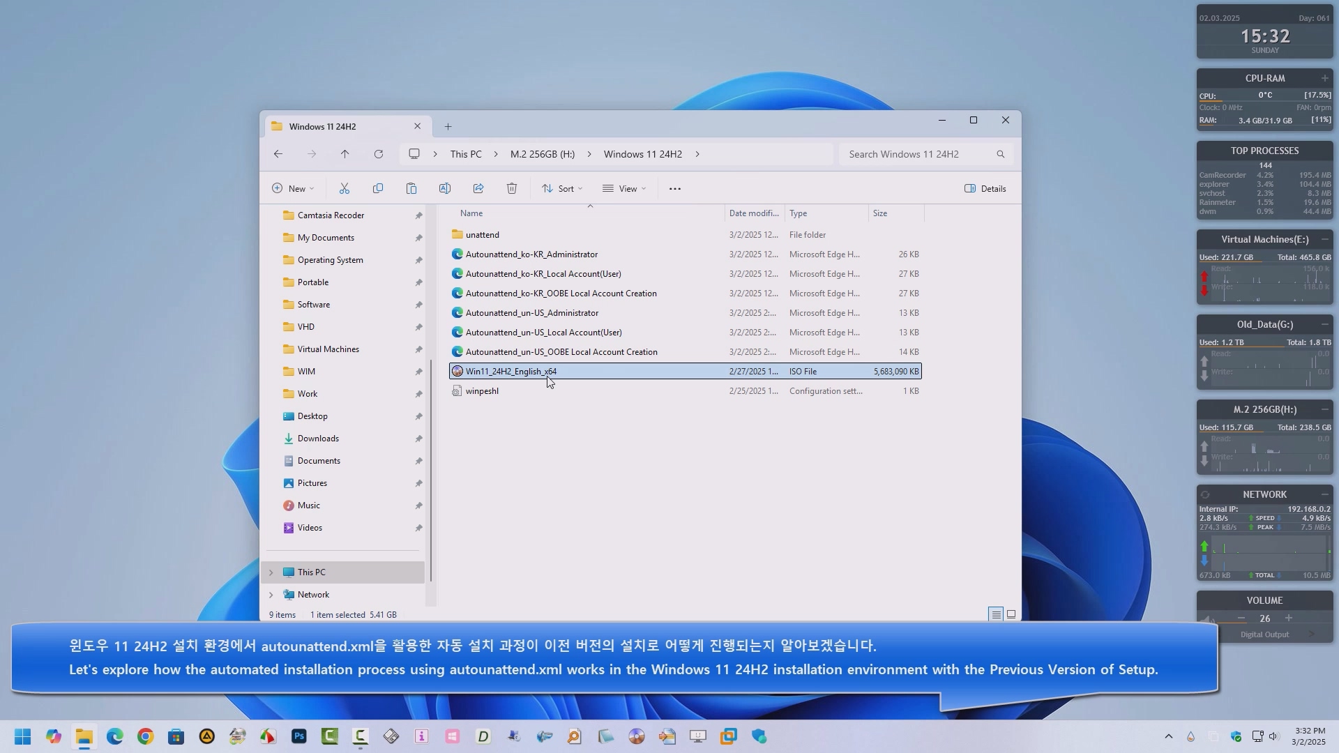 영문 윈도우 11 24H2 - 이전 버전의 설치를 autounattend.xml을 사용하여 전체 자동으로 진행하는 과정을 녹화해 보았습니다. 참고 하여 활용해 보시기 바랍니다.