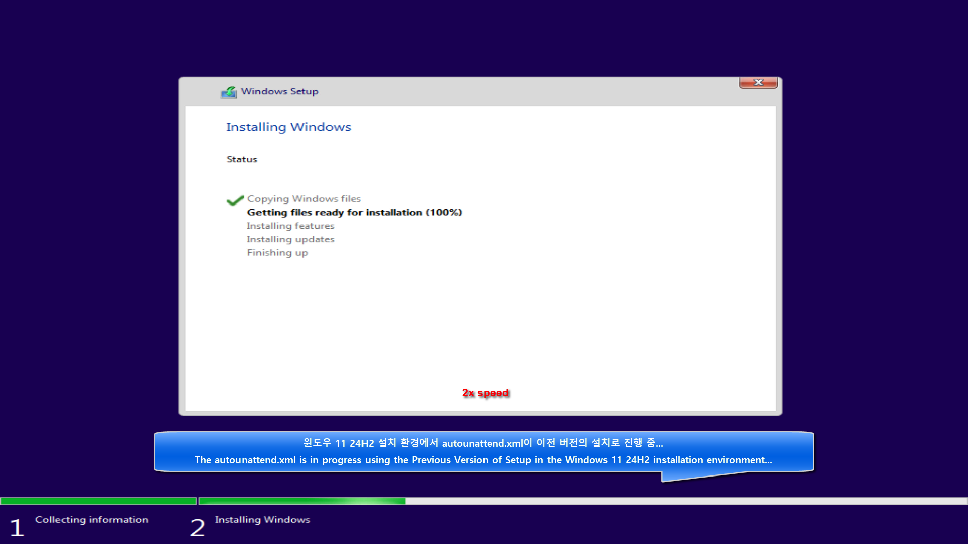 I have recorded the entire process of automatically installing Windows 11 24H2 - Previous Version of Setup using autounattend.xml. Please refer to it and use it as a guide.