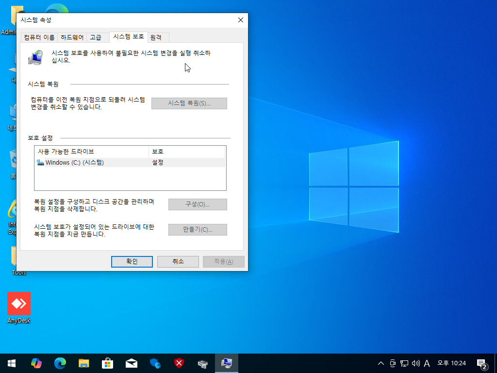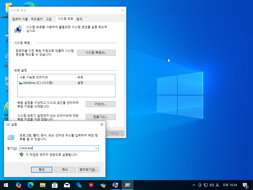 윈도우10 시스템 복원 활성화 설치 - 움짤 GIF