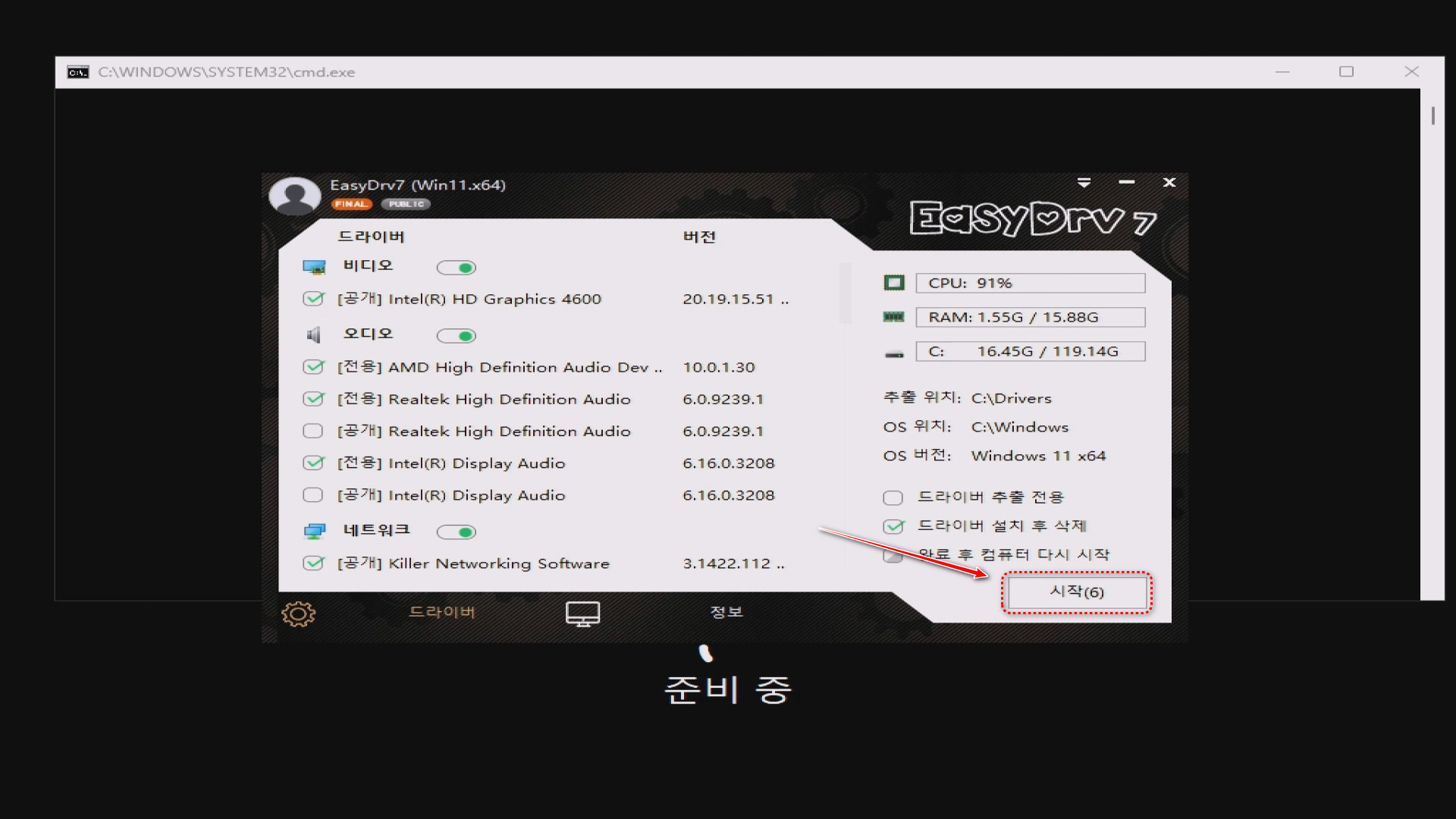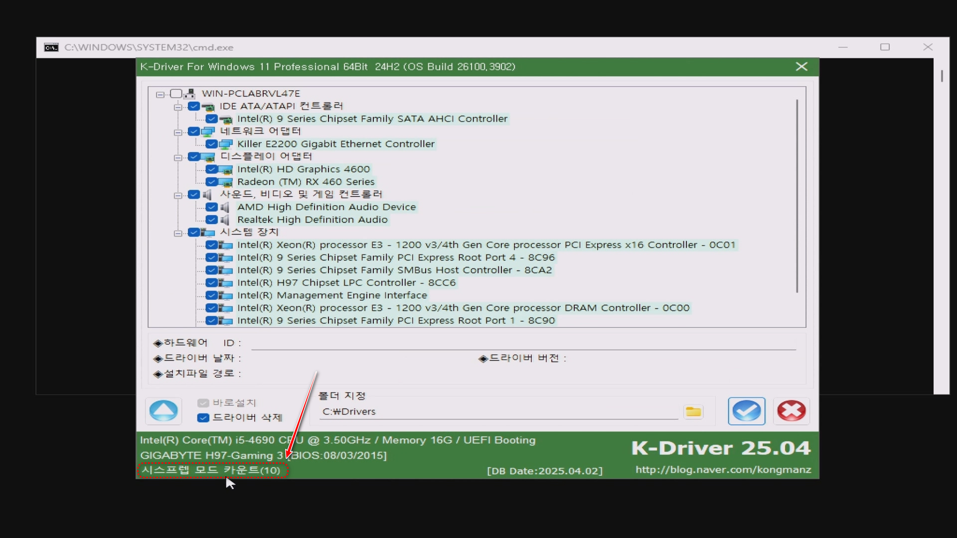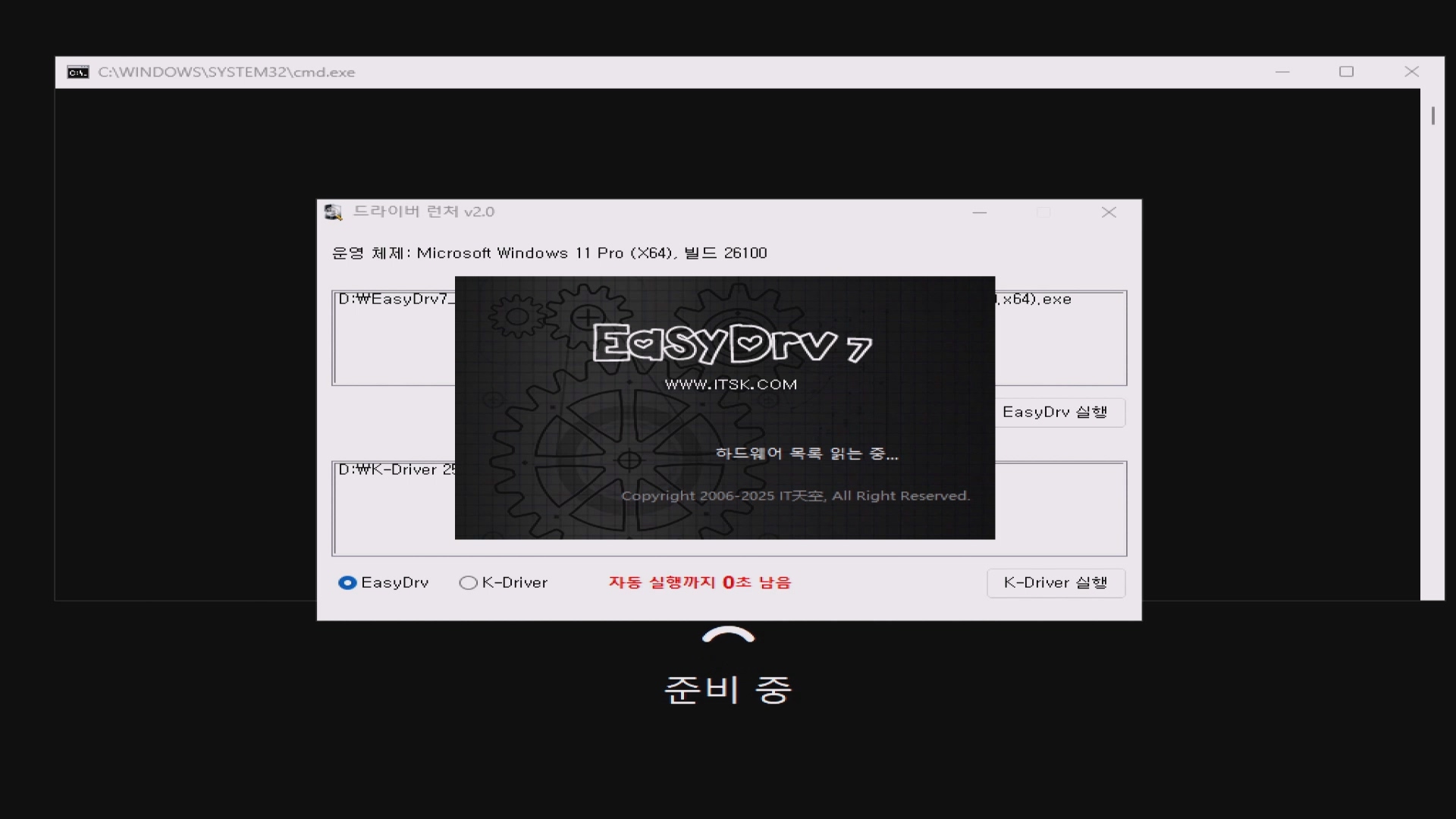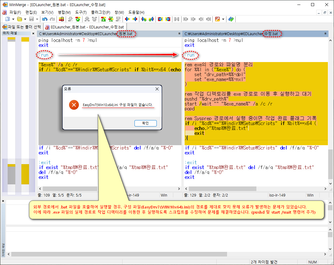 외부 경로에서 .bat 파일을 호출하여 실행할 경우, 구성 파일(EasyDrv7(WIN10x64).ini)의 경로를 제대로 찾지 못해 오류가 발생하는 문제가 있었습니다.