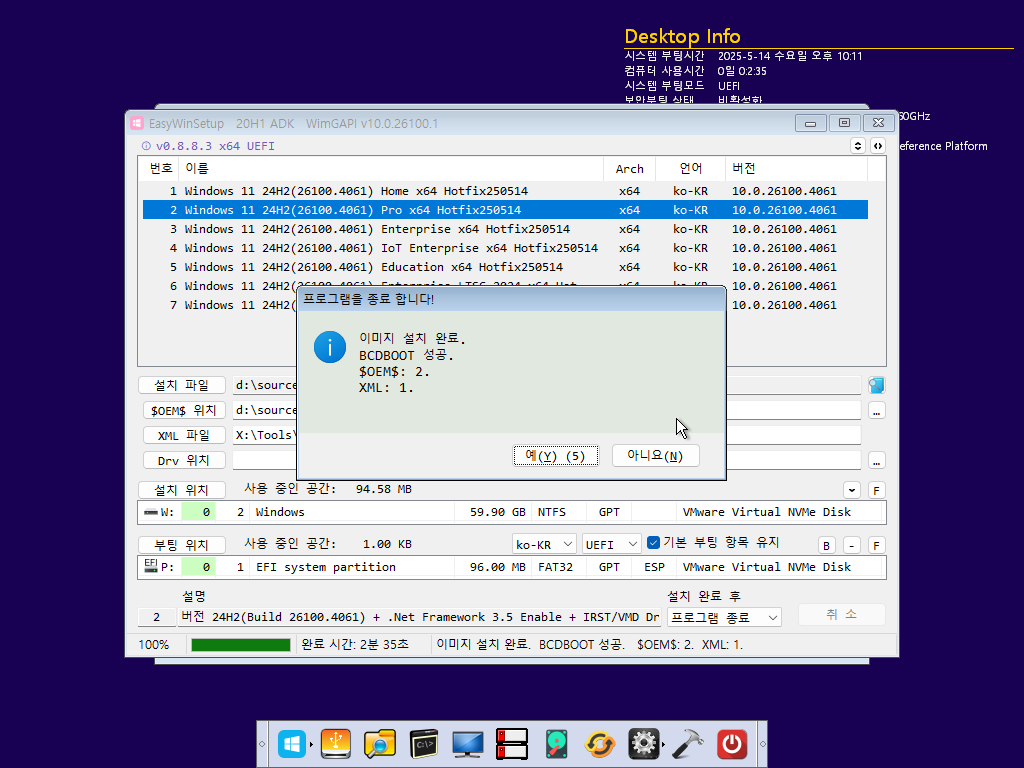 모든 Index의 winre.wim파일이 갱신되어 PE빌드에 사용할 수 있습니다.