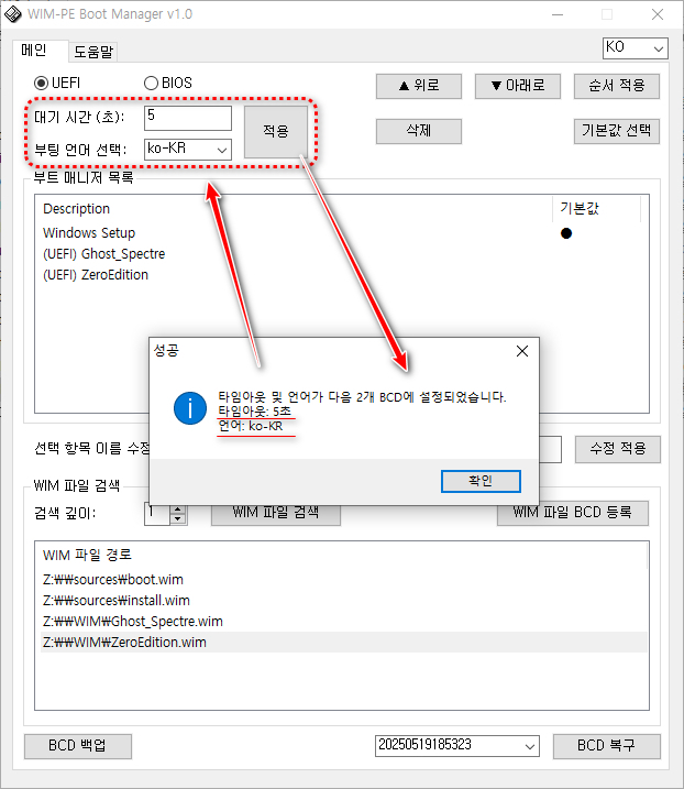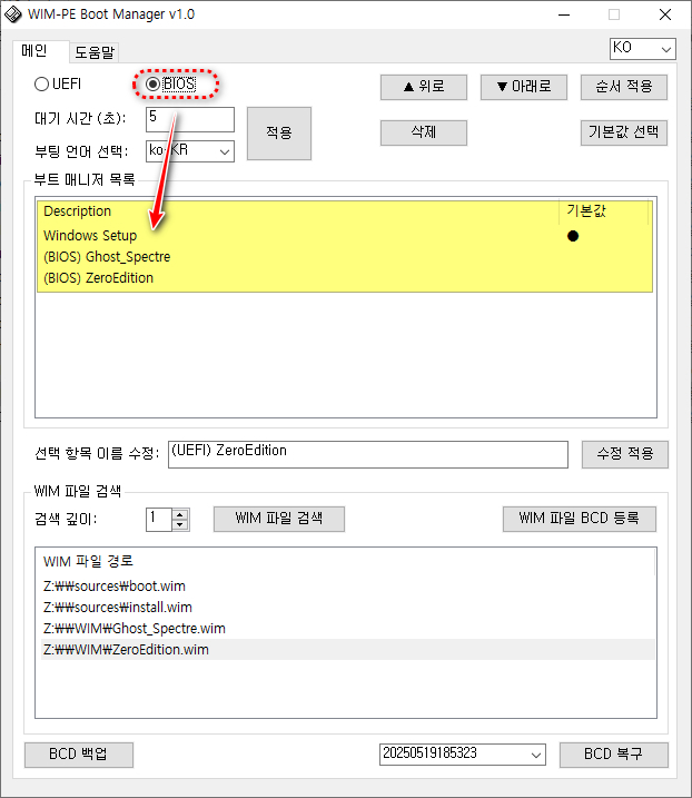 - WIM 파일 BCD 등록시 파일 이름에 (UEFI), (BIOS) 자동 추가 됨