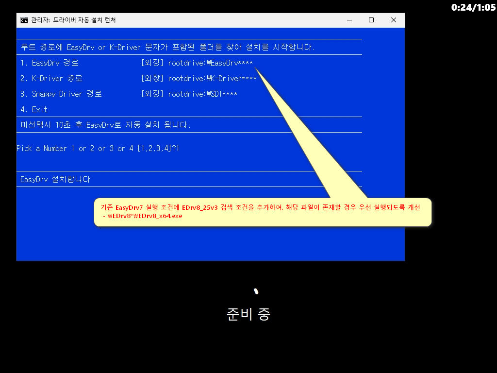 기존 DrvAutoLauncher.bat 드라이버 런처에 EDrv8_25v3 자동 설치 실행 조건을 추가해 보았습니다.