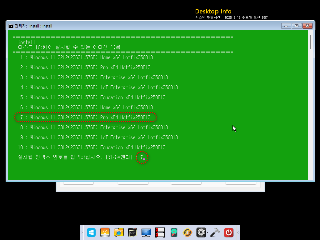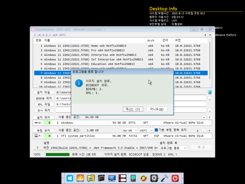 모든 Index의 winre.wim파일이 갱신되어 PE빌드에 사용할 수 있습니다.