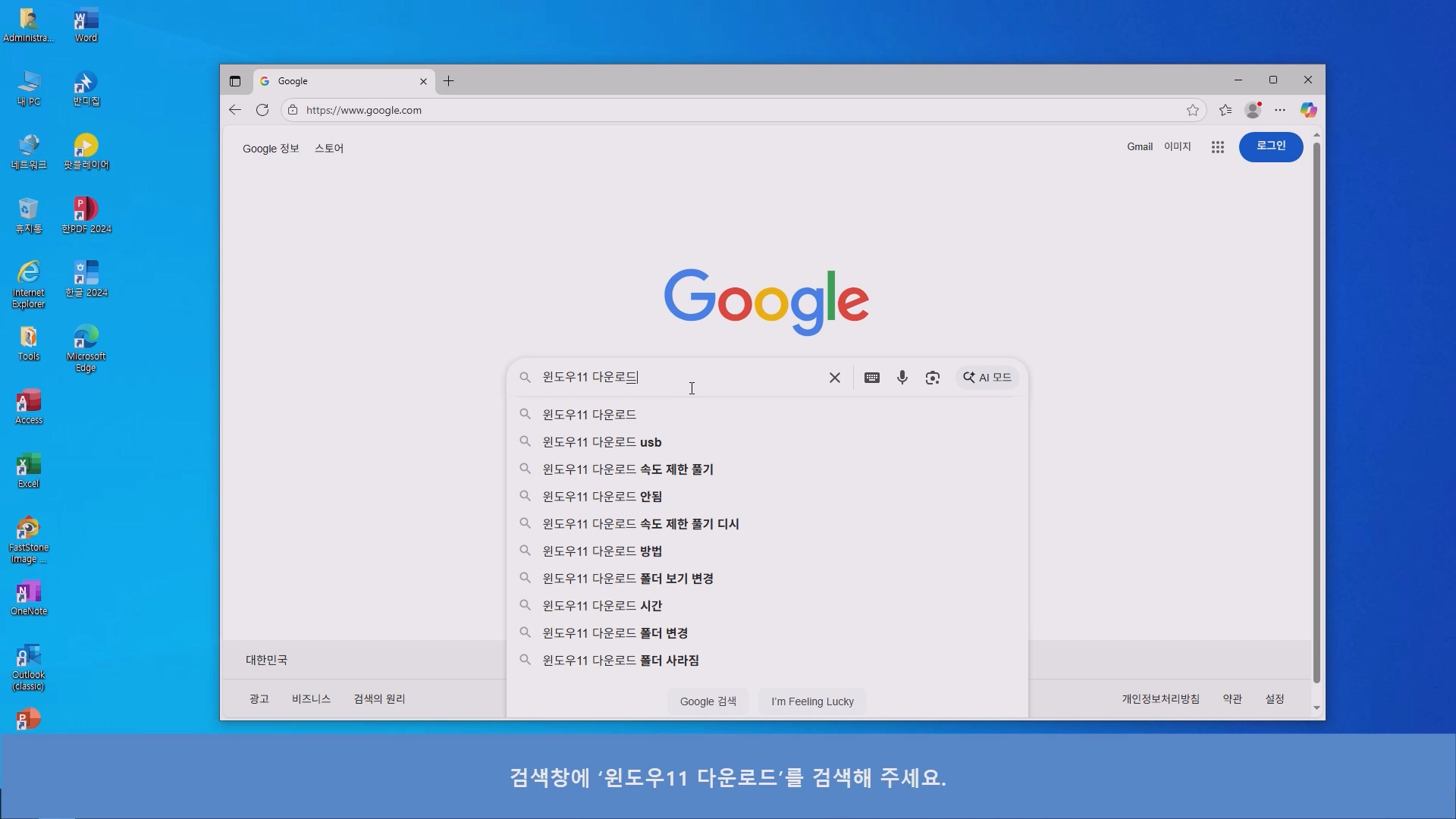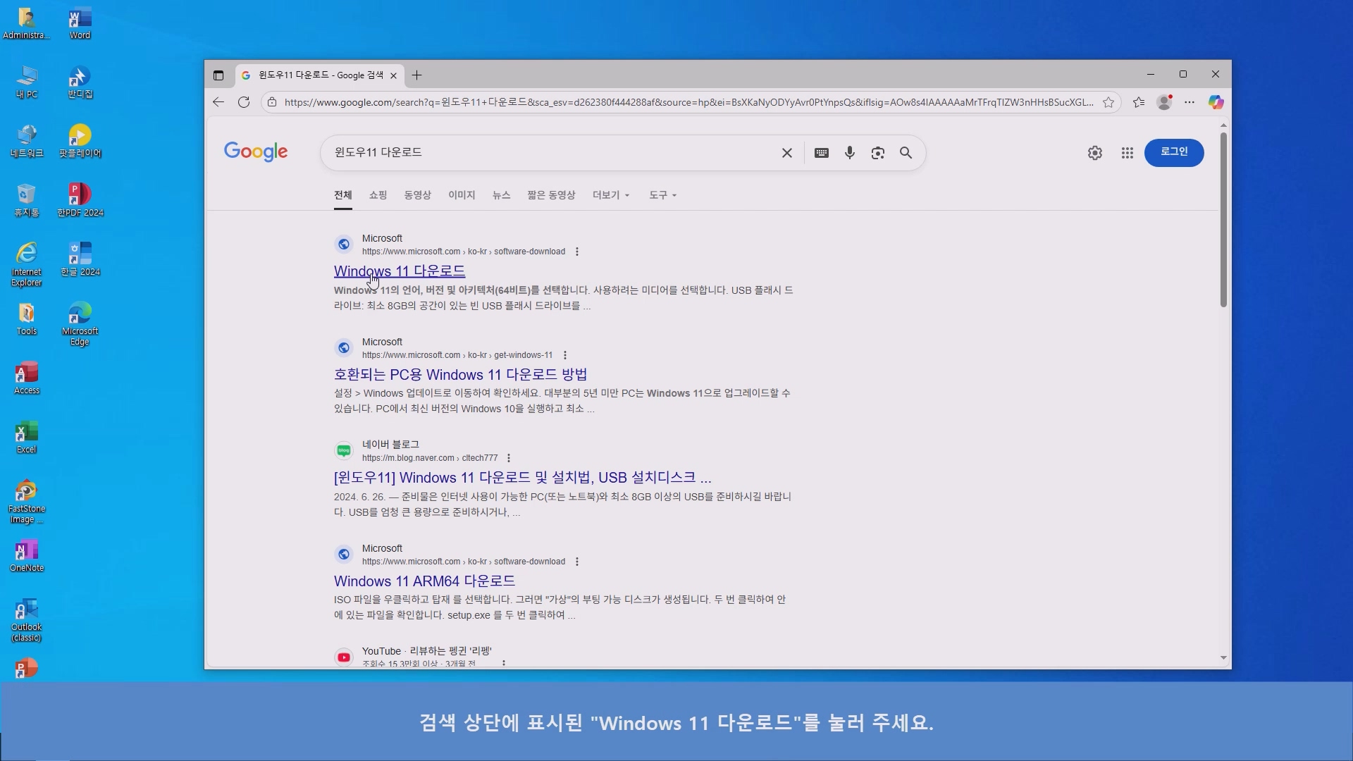 - 검색창에 **“윈도우11 다운로드”**를 입력하세요.