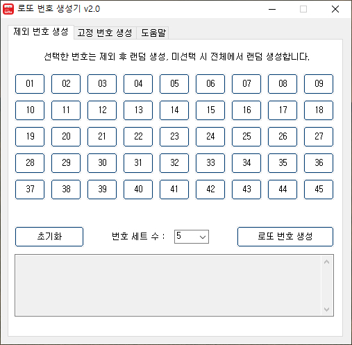 - 아무 번호도 선택하지 않으면 전체 45개 번호 중에서 무작위 추첨이 진행됩니다.