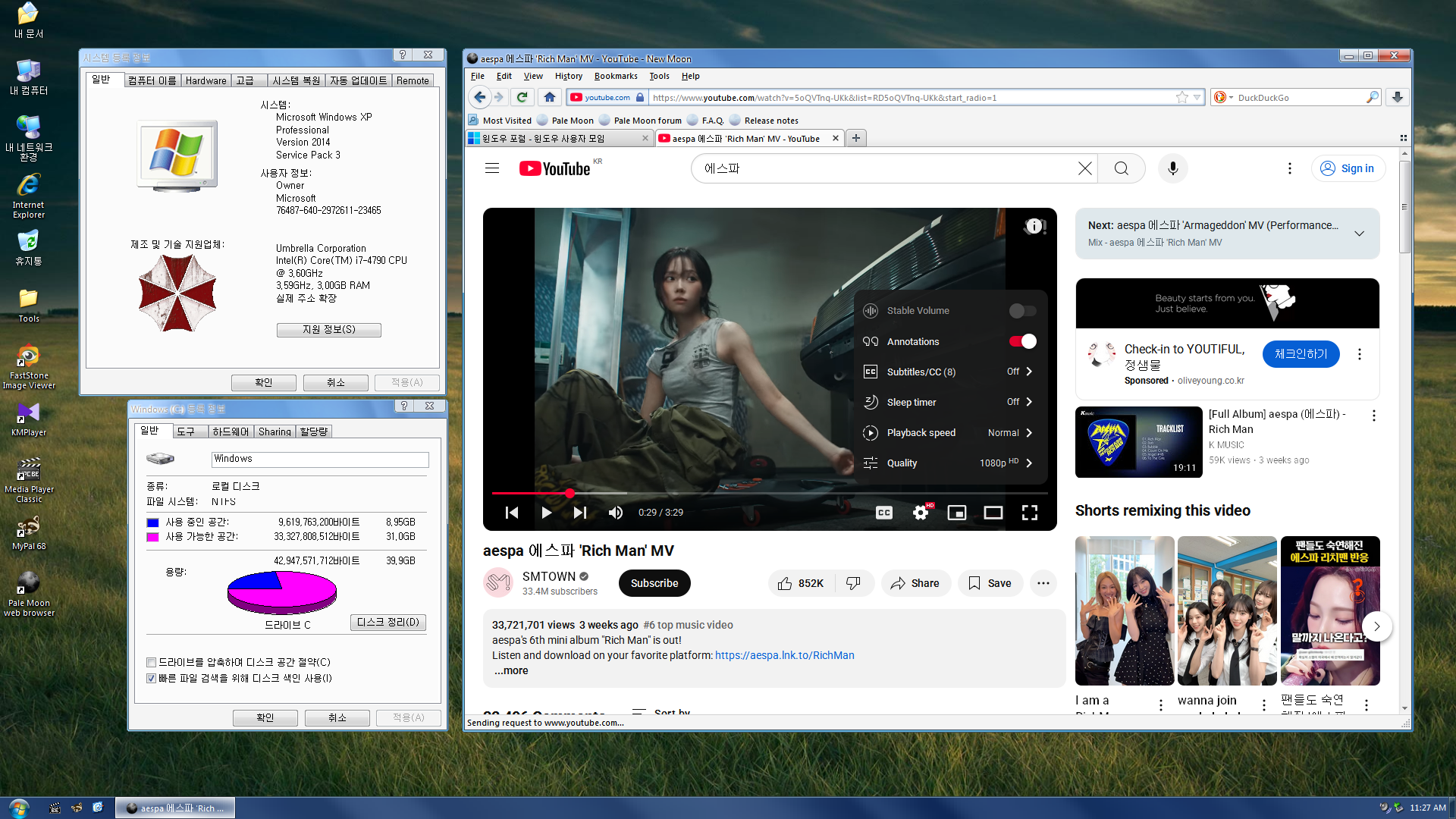 배경화면 = Windows XP Pirated Edition, Bliss(1920x1080), Seychelles - La Digue - Beach(1920x1080).