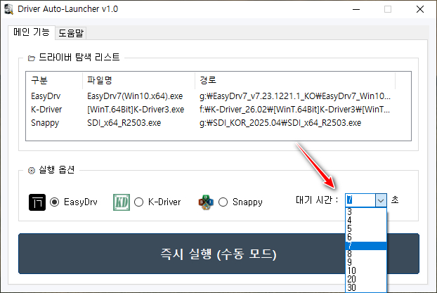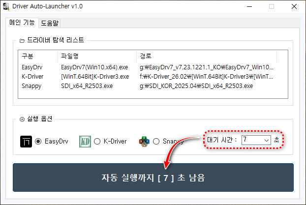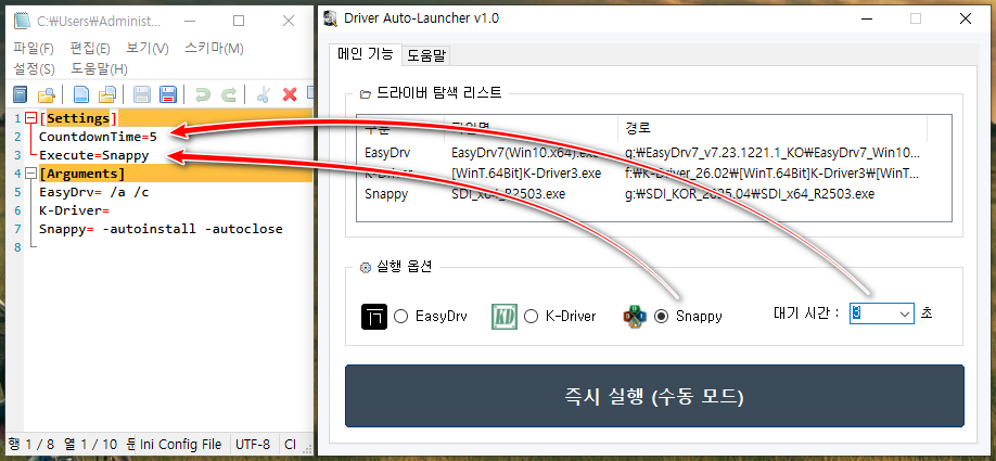 이러한 인자는 Driver_Auto-Launcher.ini 설정 파일에서 자유롭게 수정할 수 있습니다.