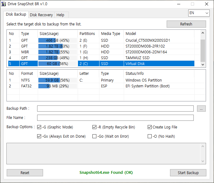 즉, Drive Snapshot의 기능을 GUI로 편하게 사용할 수 있는 래퍼 프로그램이라고 볼 수 있습니다.