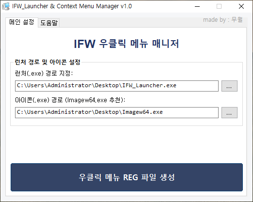 - 기본 실행 시 GUI 모드로 동작하며, Windows용 레지스트리(REG) 추가/제거 항목을 생성 할수 있습니다.