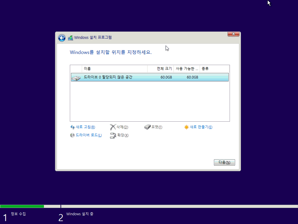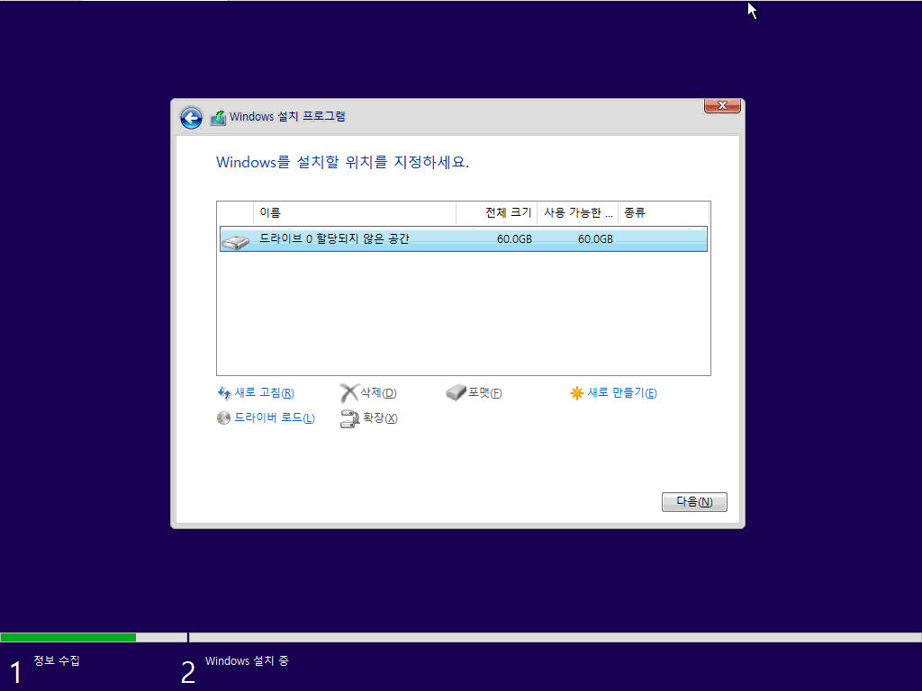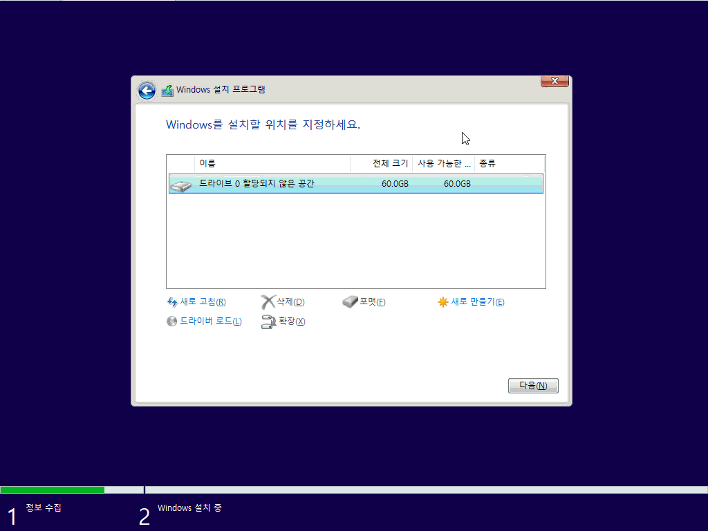 작업할 디스크 선택