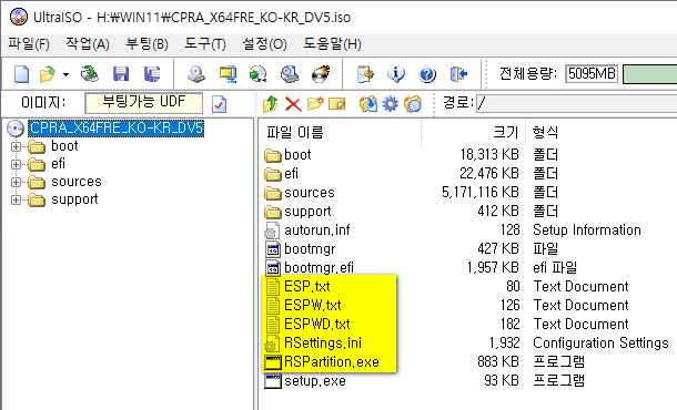 스크립트 텍스트 파일과 RSPartition은 ISO 루트 경로에 두고 사용해도 됩니다.