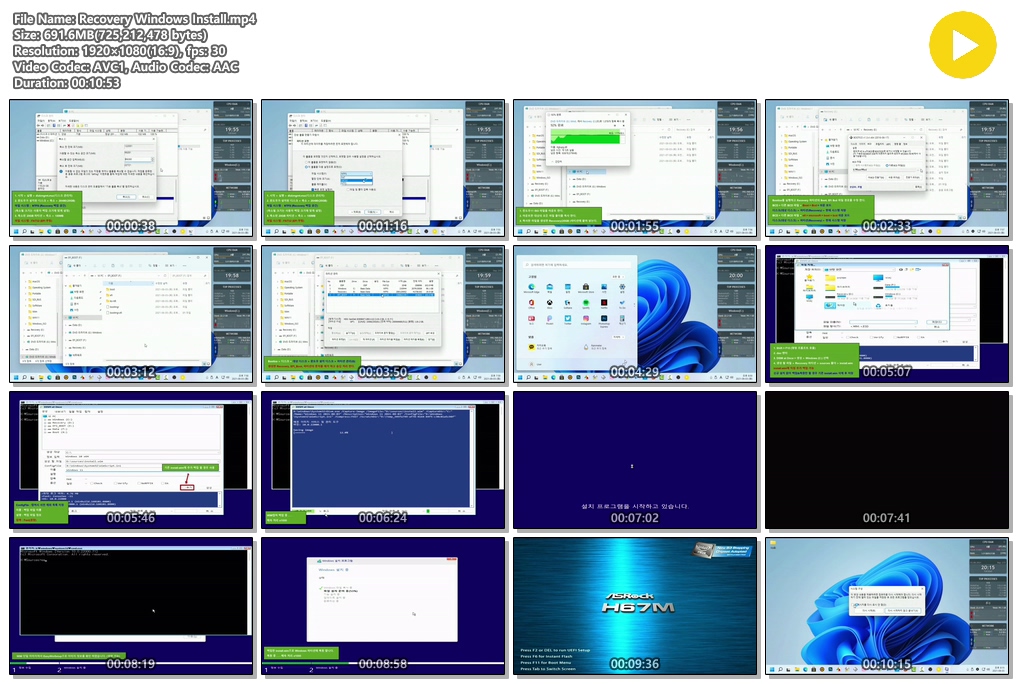 윈도우 뼈대 ISO boot.wim과 DISM at Once를 이용한 백업/복구 과정을 녹화한 영상입니다. 테스트PC가 다소 느려 진행 과정이 원활하지 않아 짧게 진행 하였습니다. ㅡㅅㅡ;;; DISM at Once는 사전에 boot.wim index 2번 \Windows\System32 경로에 추가 하였습니다. 세부 내용은 하단 유튜브 영상 참고 바랍니다.