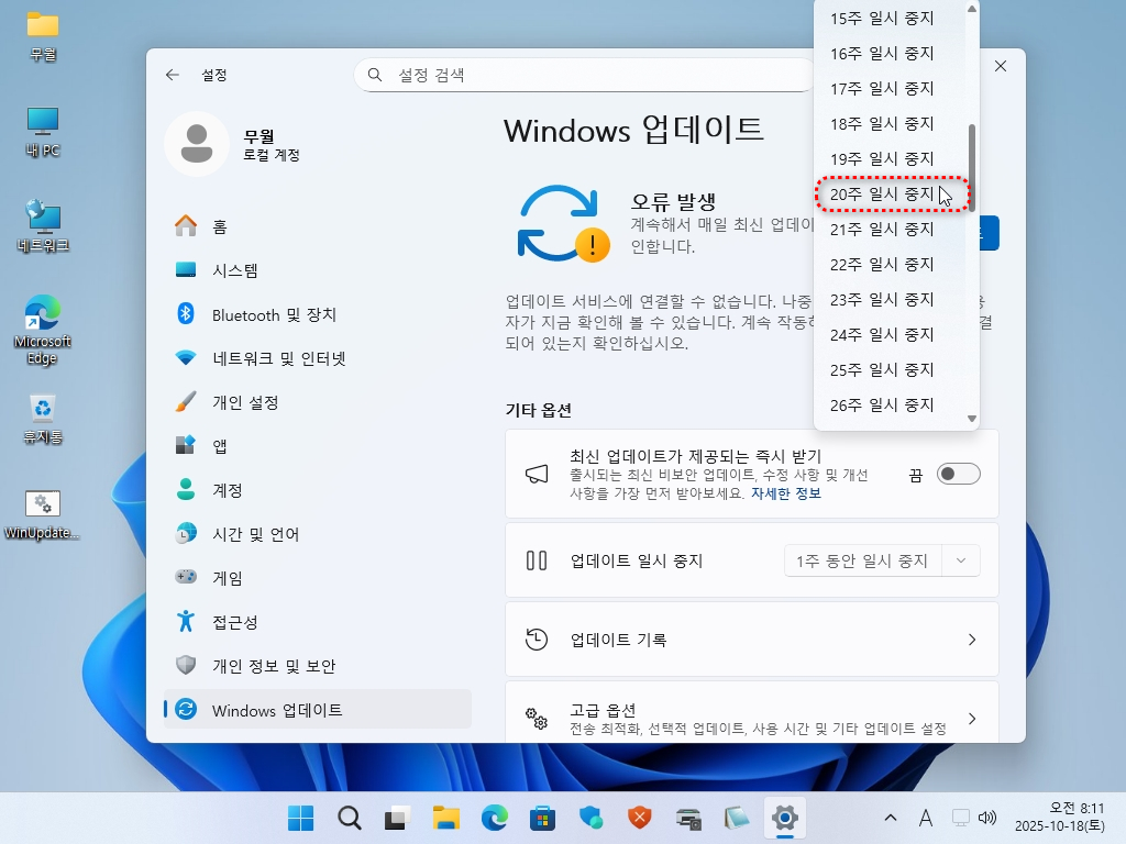 echo %indent%%indent% Windows Update "업데이트 일시중지" 기간 설정