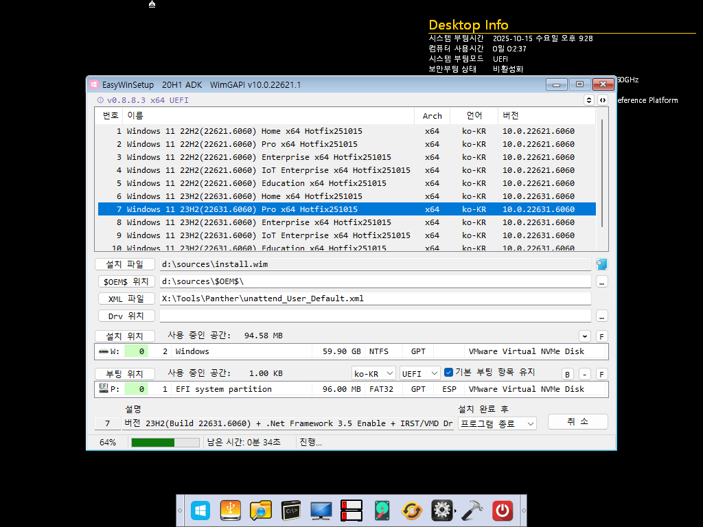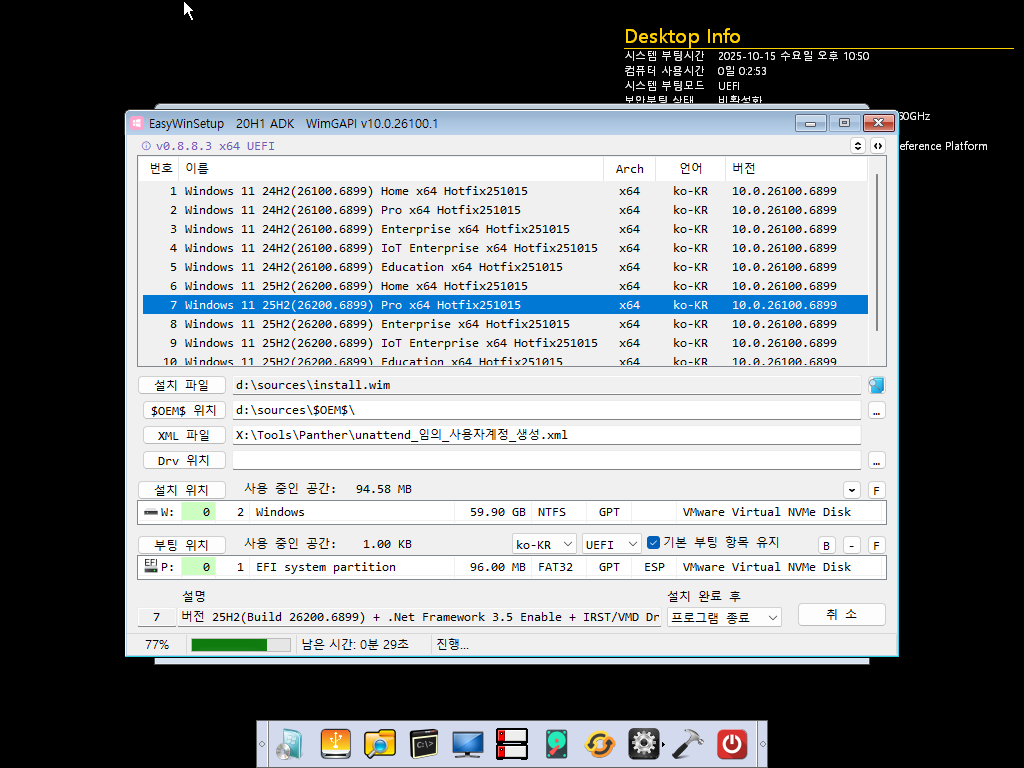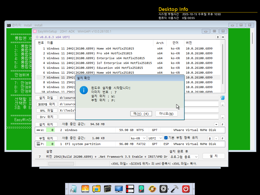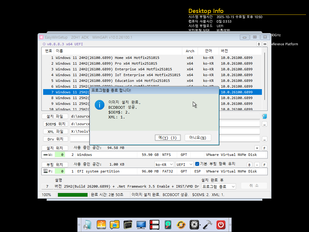 모든 Index의 winre.wim파일이 갱신되어 PE빌드에 사용할 수 있습니다.