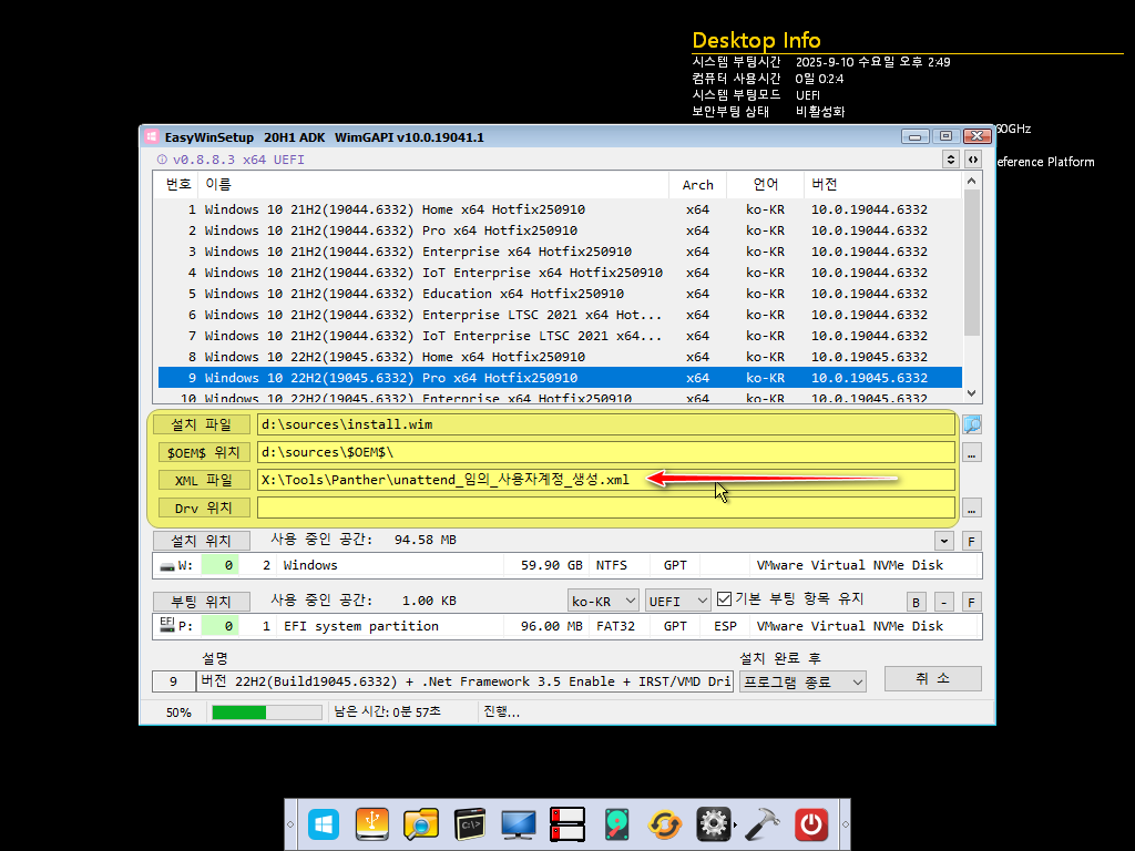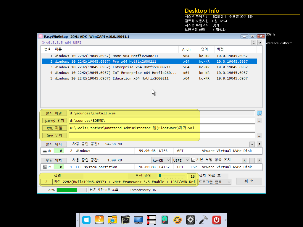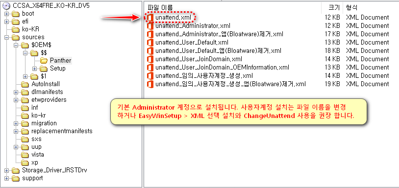 순수 설치는 ISO > Sources > $OEM$ 폴더 삭제(or 이름변경) 후 사용 가능합니다.