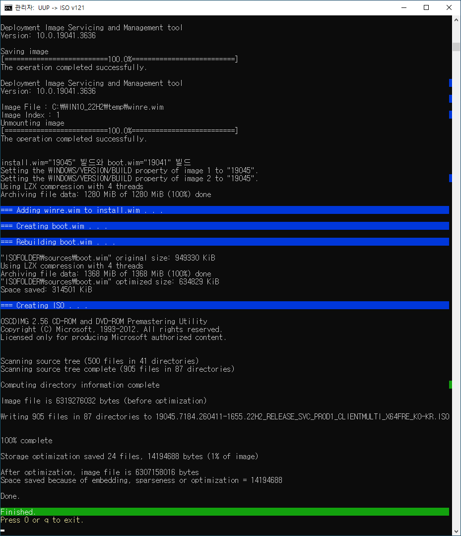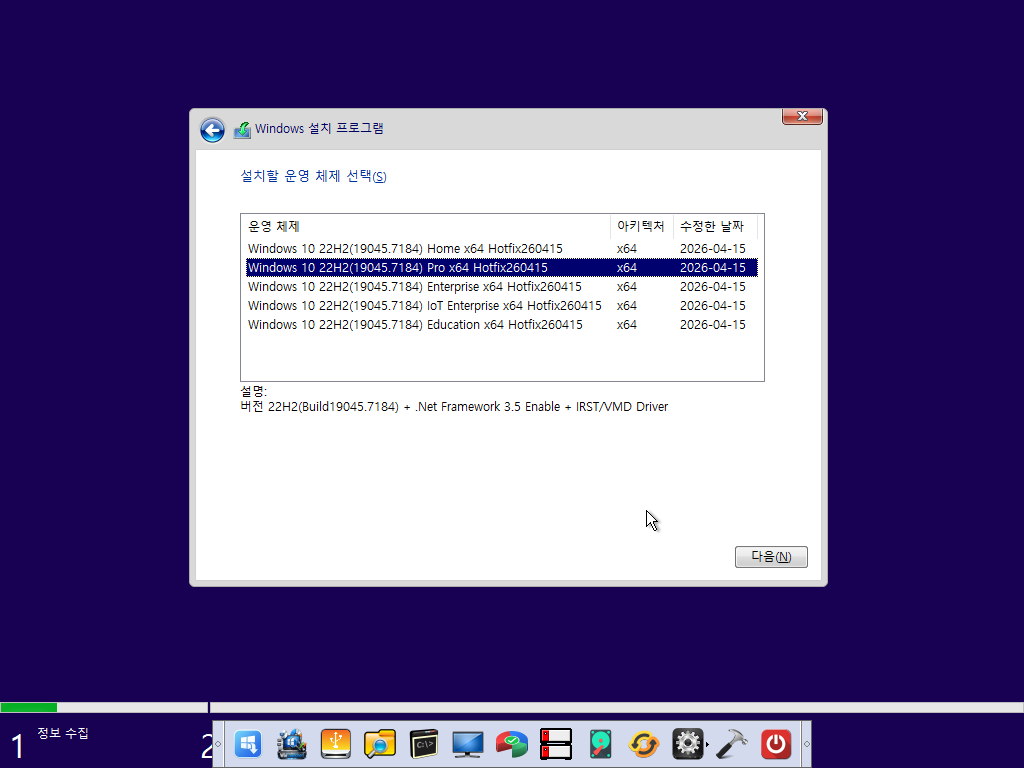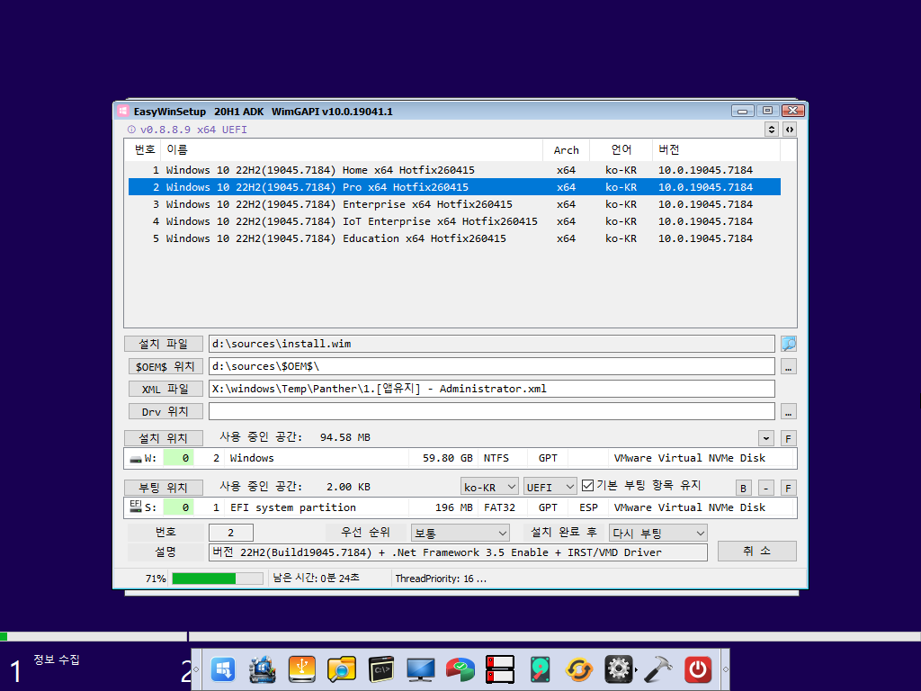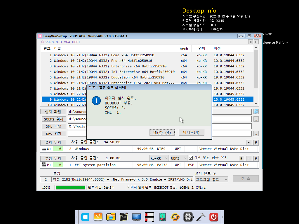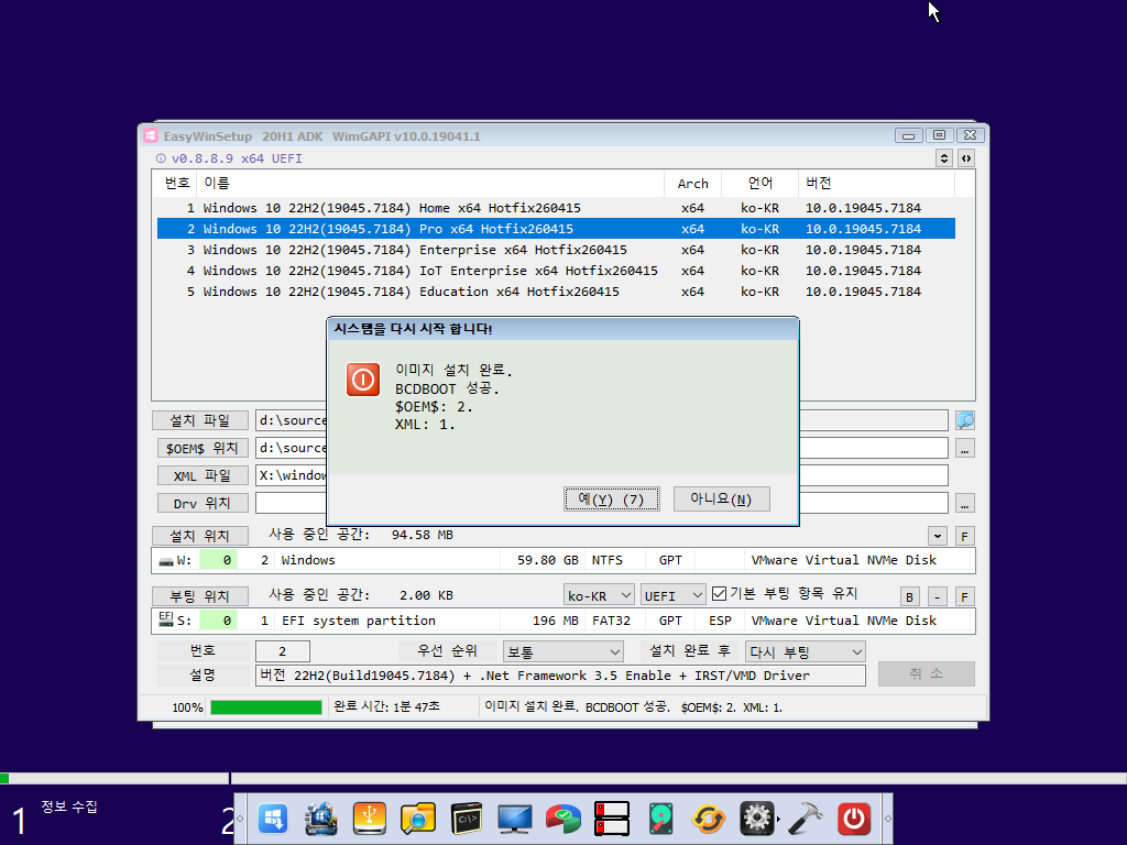 모든 Index의 winre.wim파일이 갱신되어 PE빌드에 사용할 수 있습니다.