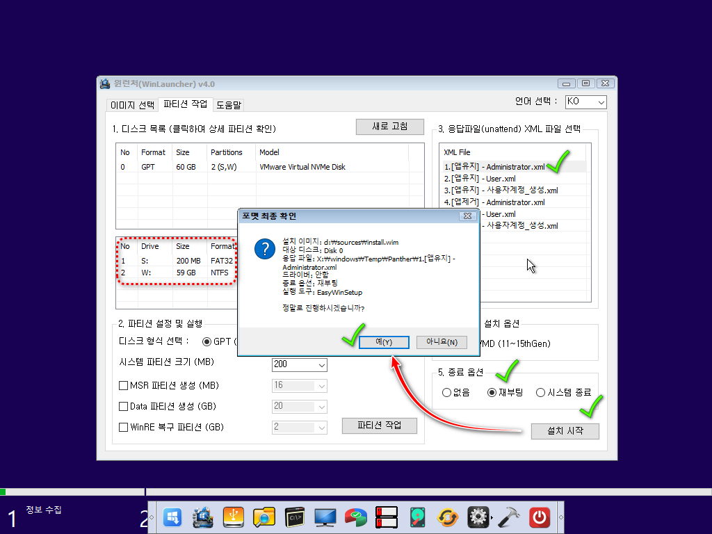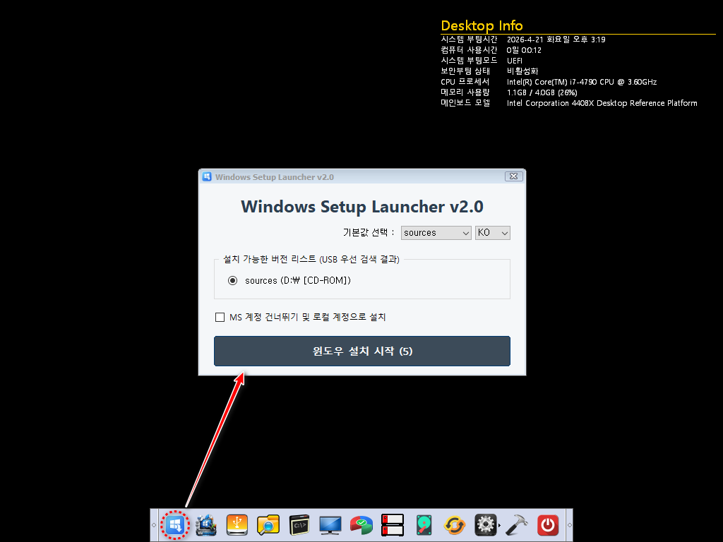 boot.wim 우회 및 LaunchBar 추가 기본 관리자(Administrator)계정으로 설치 됩니다.